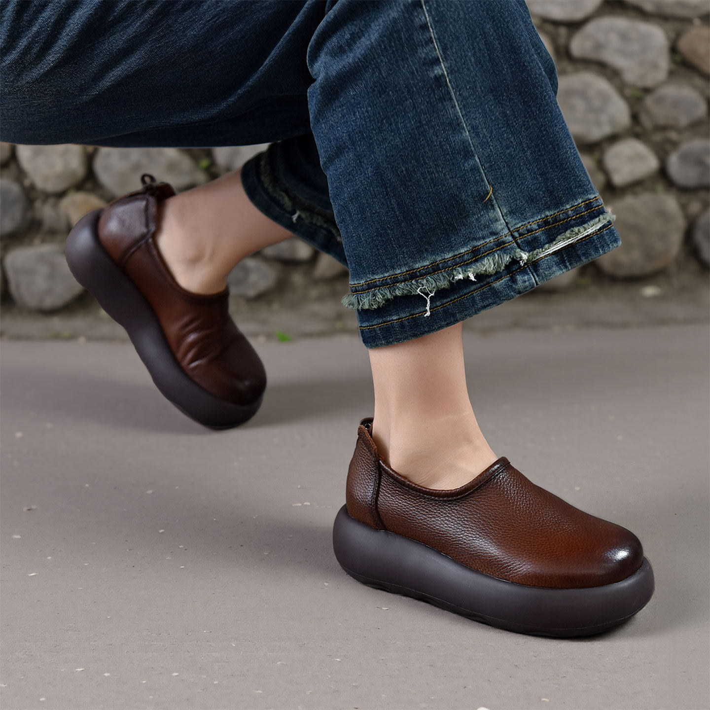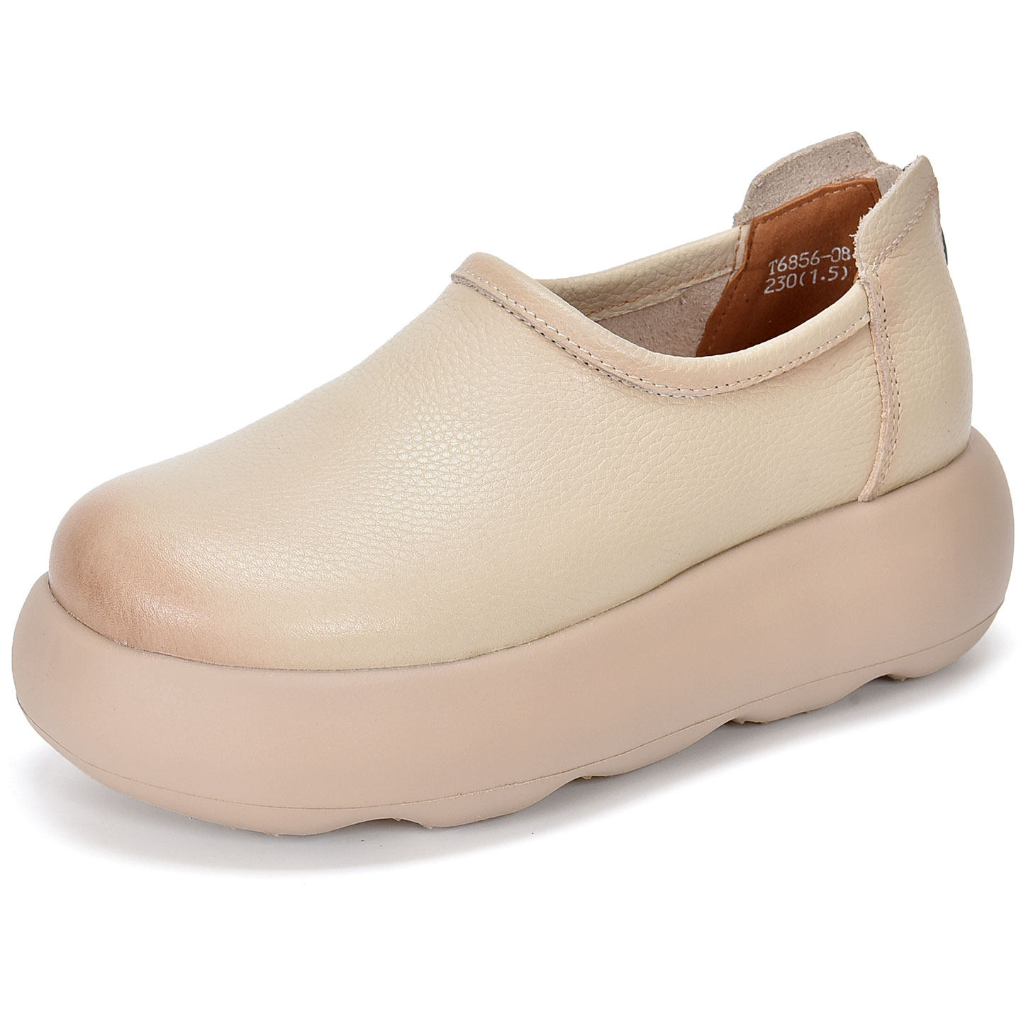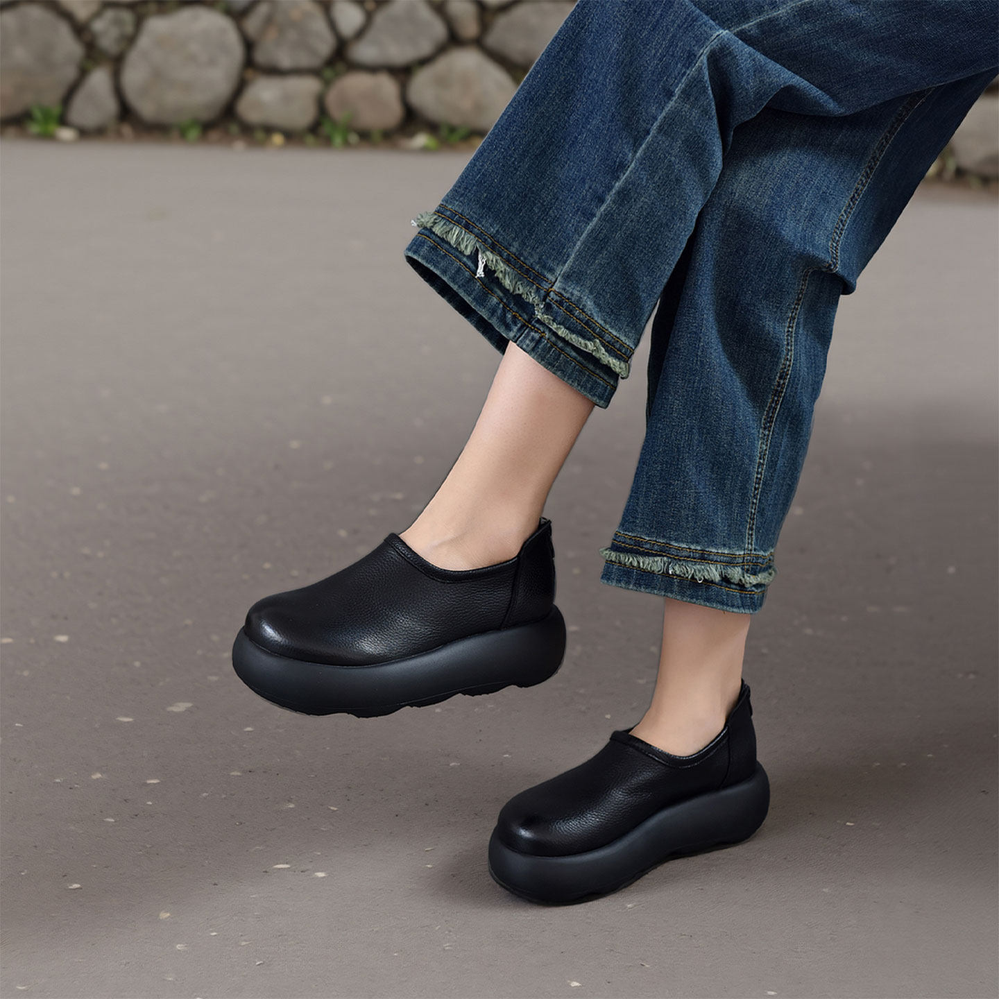 四起哥2026春简约风真皮厚底乐福鞋女圆头松糕鞋轻便百搭休闲单鞋