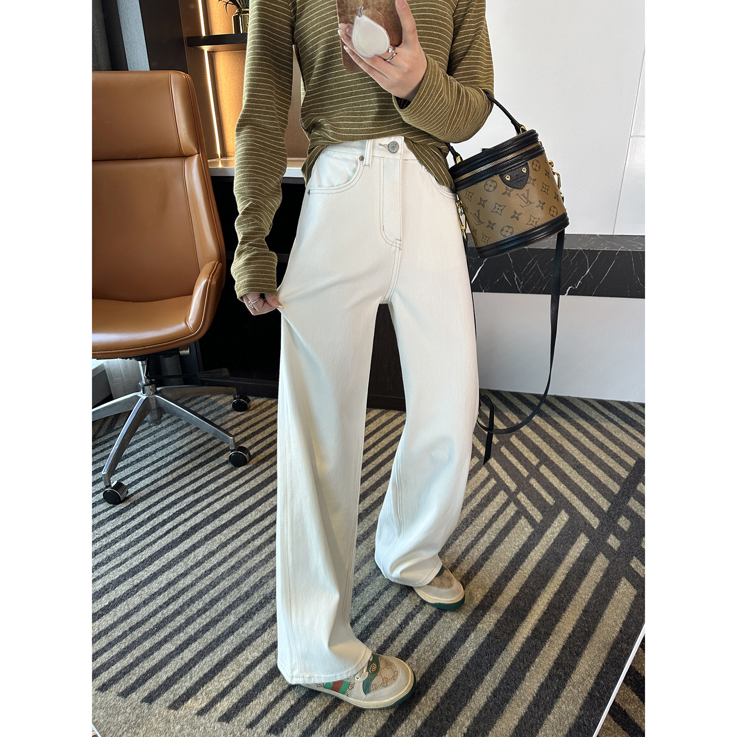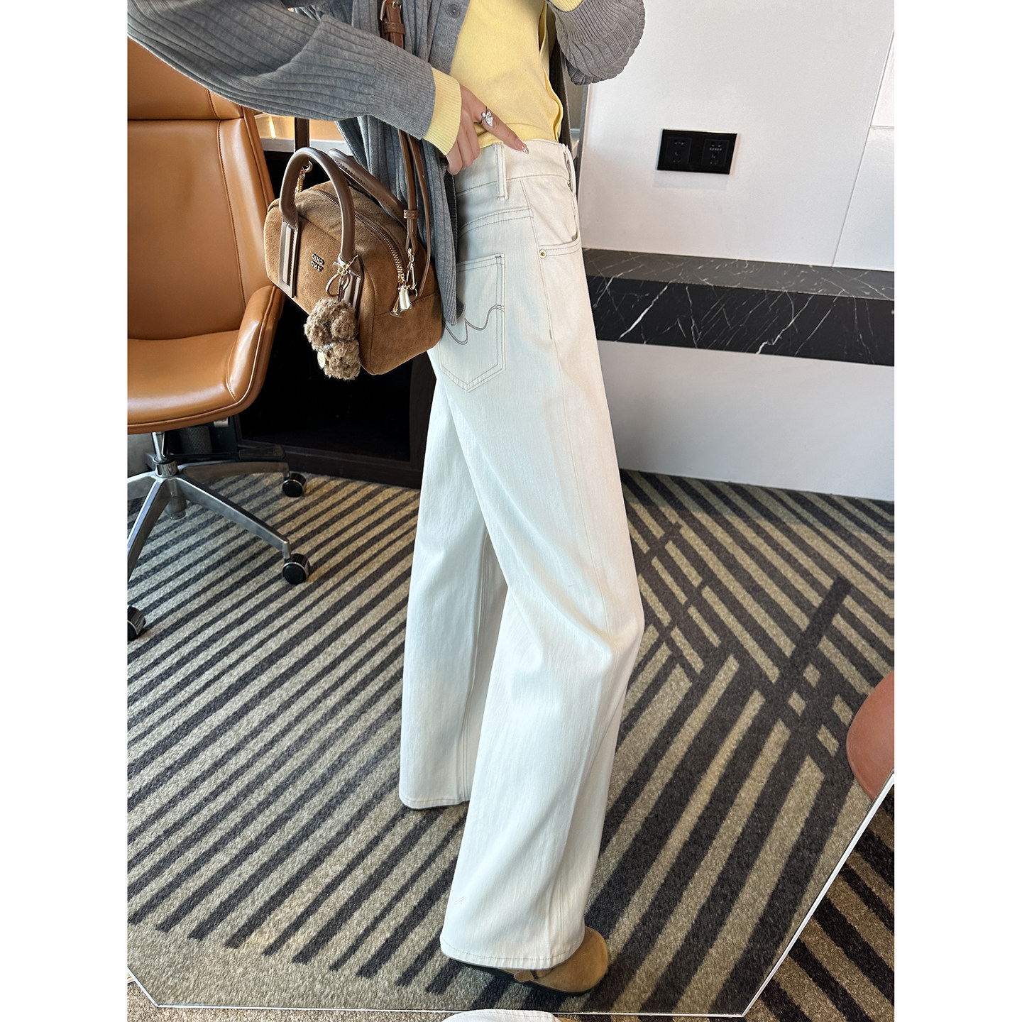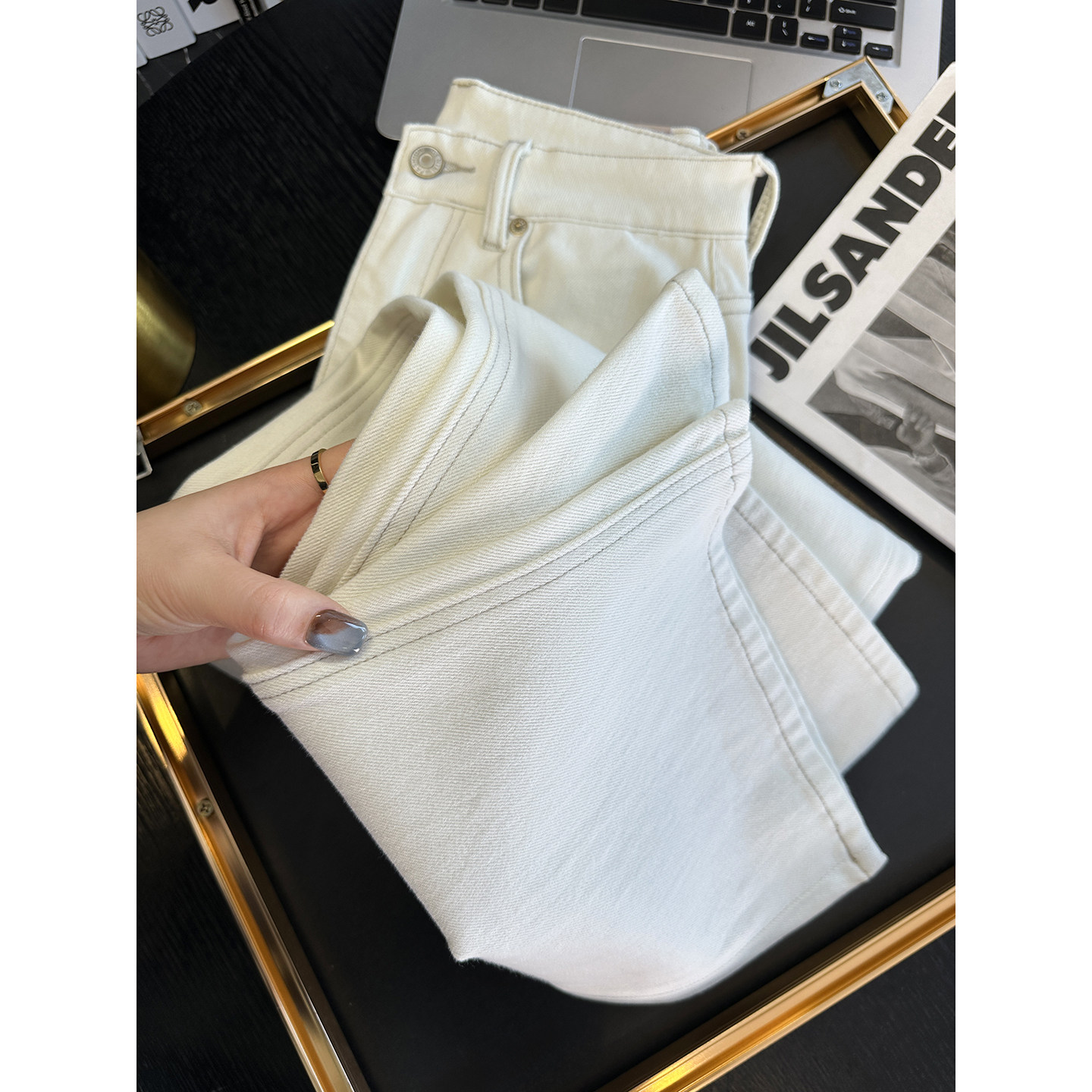 版型天菜!~白色窄版直筒牛仔裤女2026新款高腰宽松阔腿长裤子春