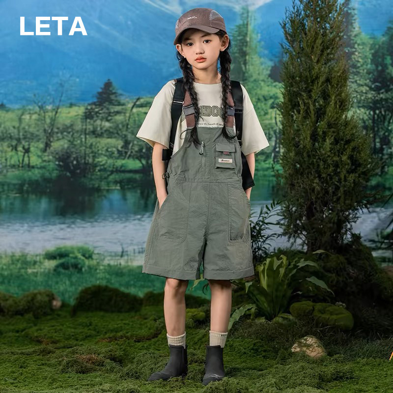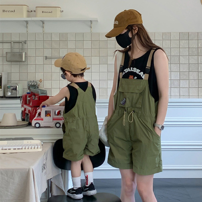 夏季洋气亲子童装 时髦母女新韩系2026套装女童背带裤T恤雨鞋一套