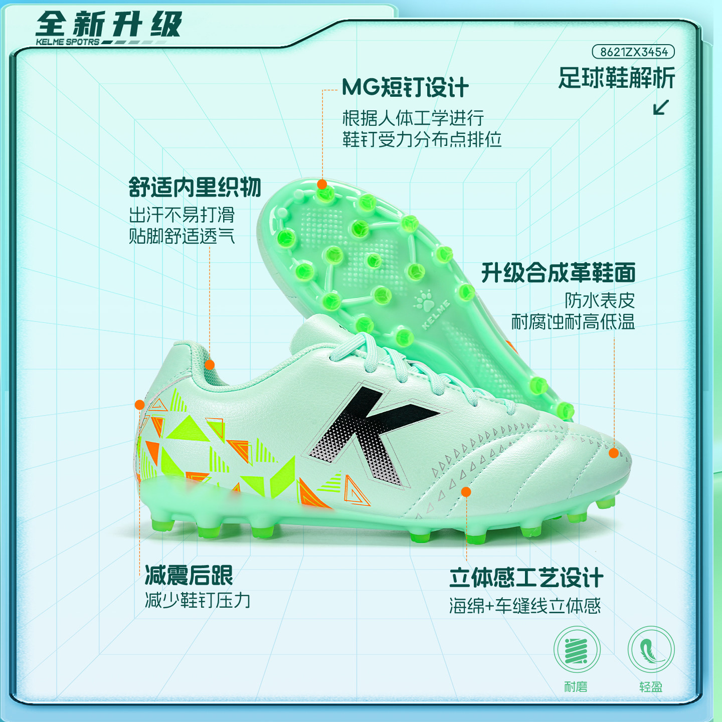 KELME卡尔美足球鞋男女MG短钉成人儿童正品专业训练比赛专用球鞋