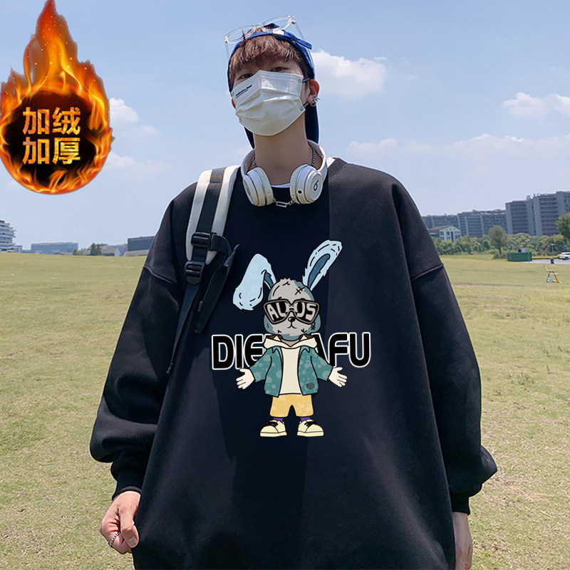 冬季男无帽卫衣加绒加厚青少年初中生秋冬保暖内搭上衣潮流不带帽