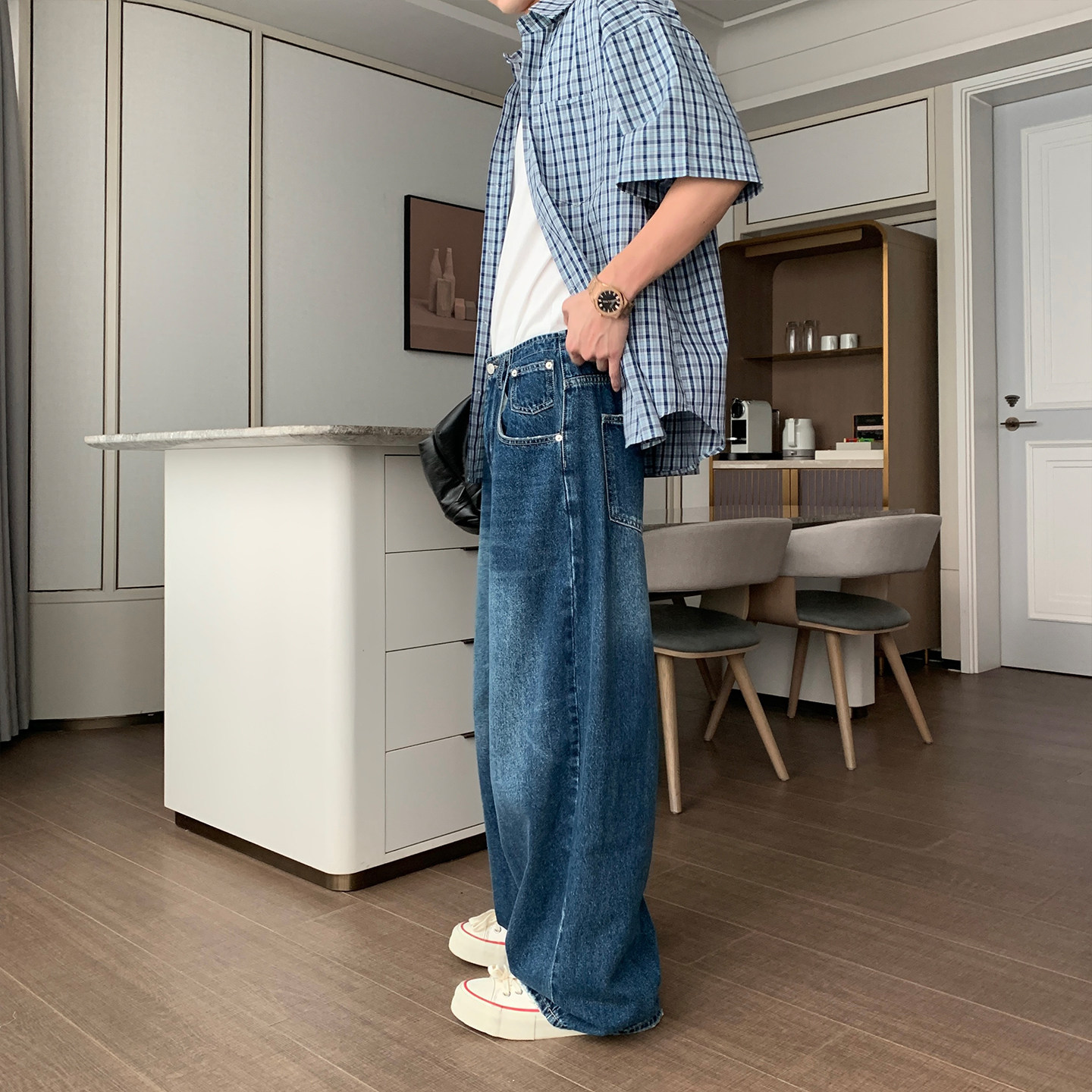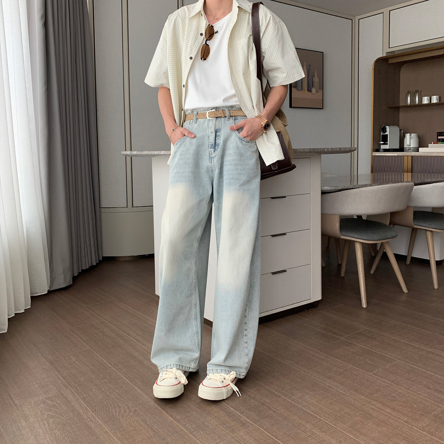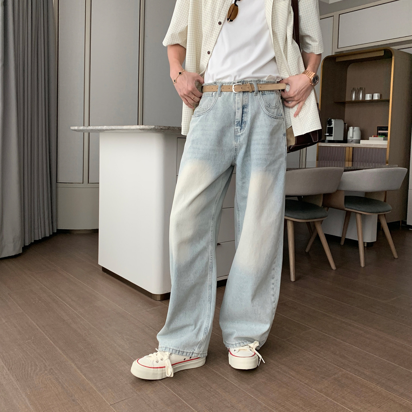 Hualun夏季薄款月光牛仔裤男款2026新款裤子男夏天宽松阔腿直筒裤