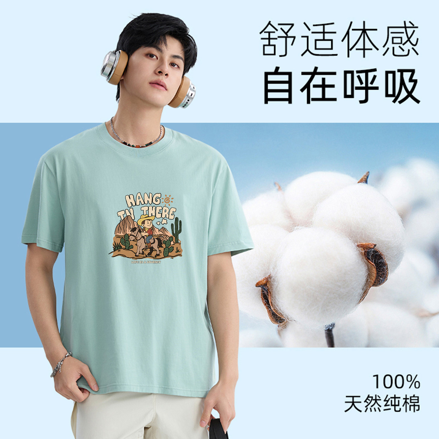 班尼路S&K青少年短袖t恤男款夏季男生宽松半袖纯棉t恤男五分袖潮A