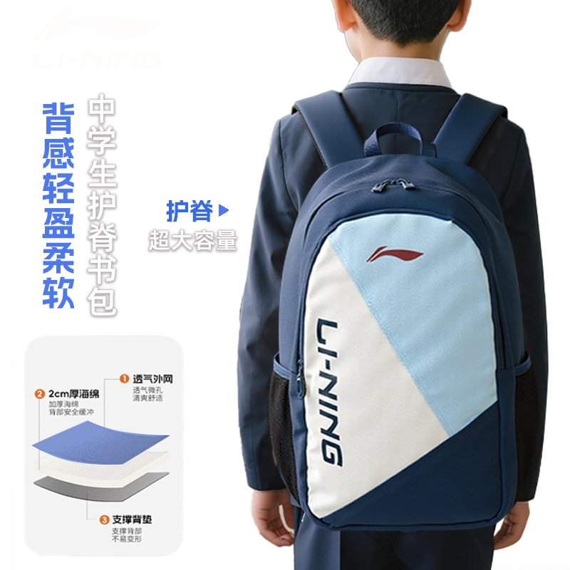李宁书包男大容量新款双肩包初高中生背包百搭学生通勤背包大包女