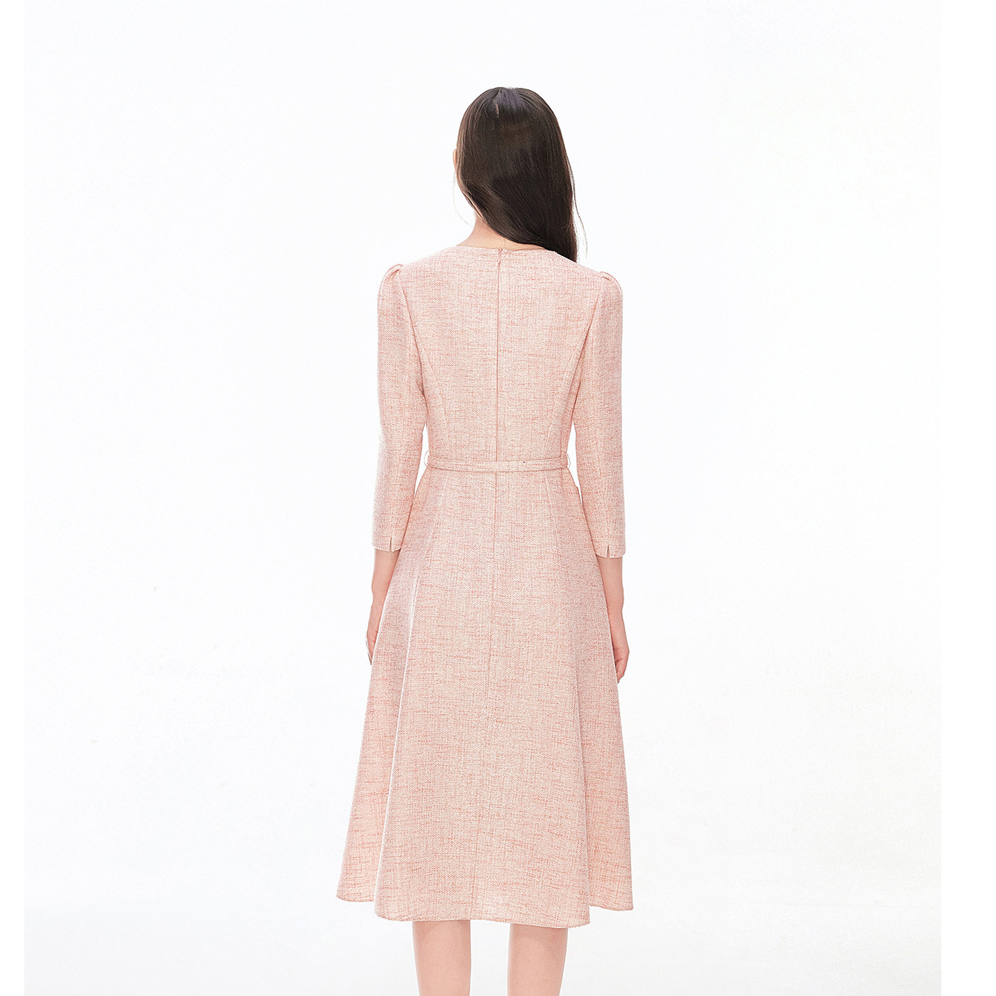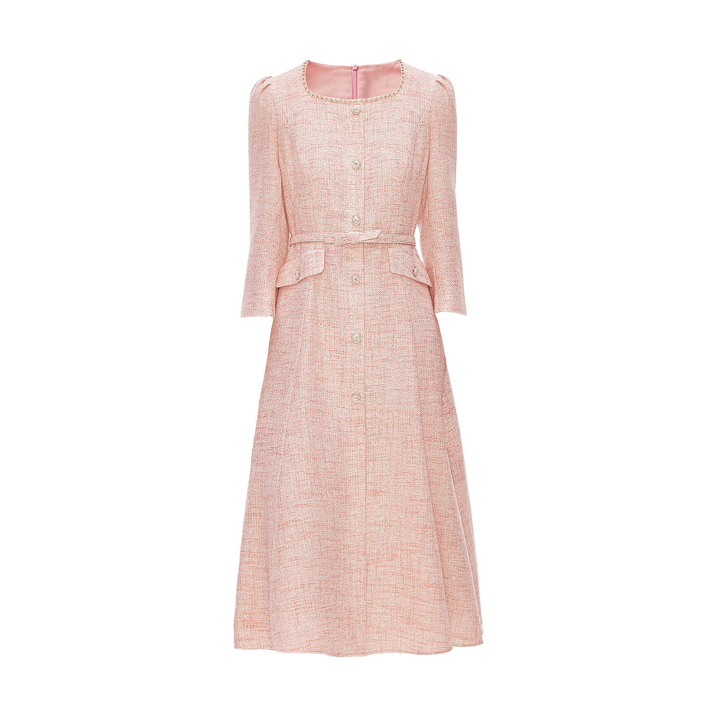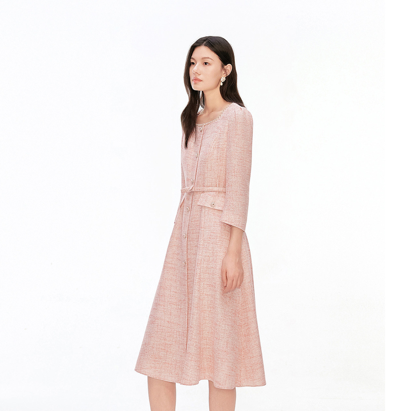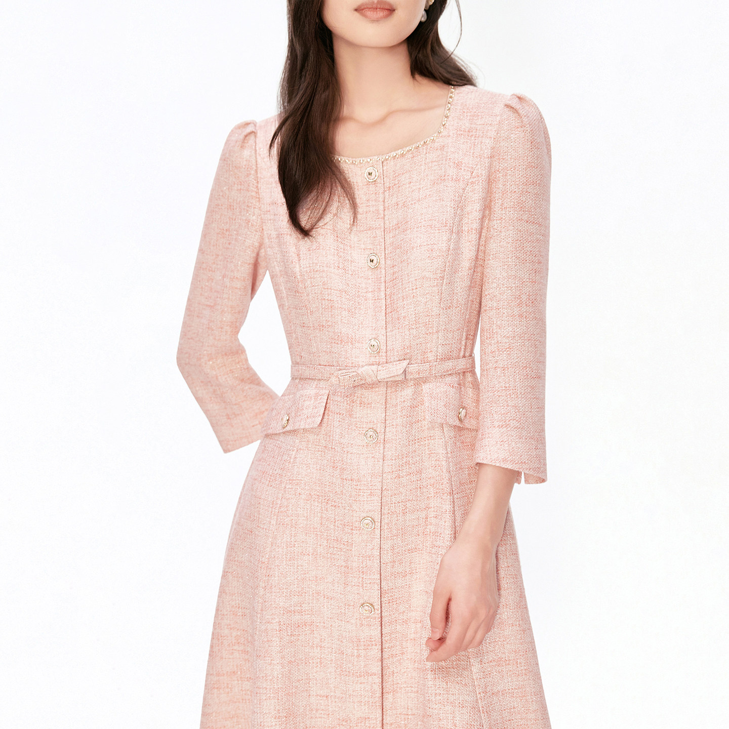 珂莱商场同款2026年春季新款女装优雅气质钉珠收腰显瘦香风连衣裙