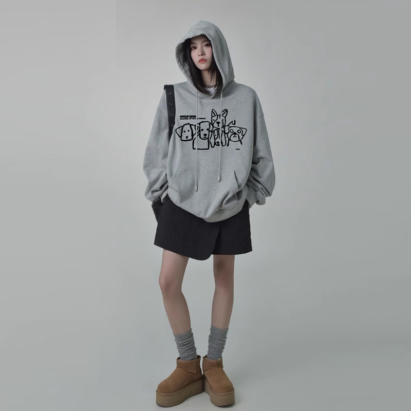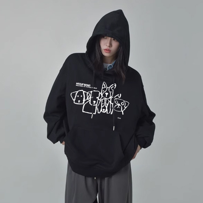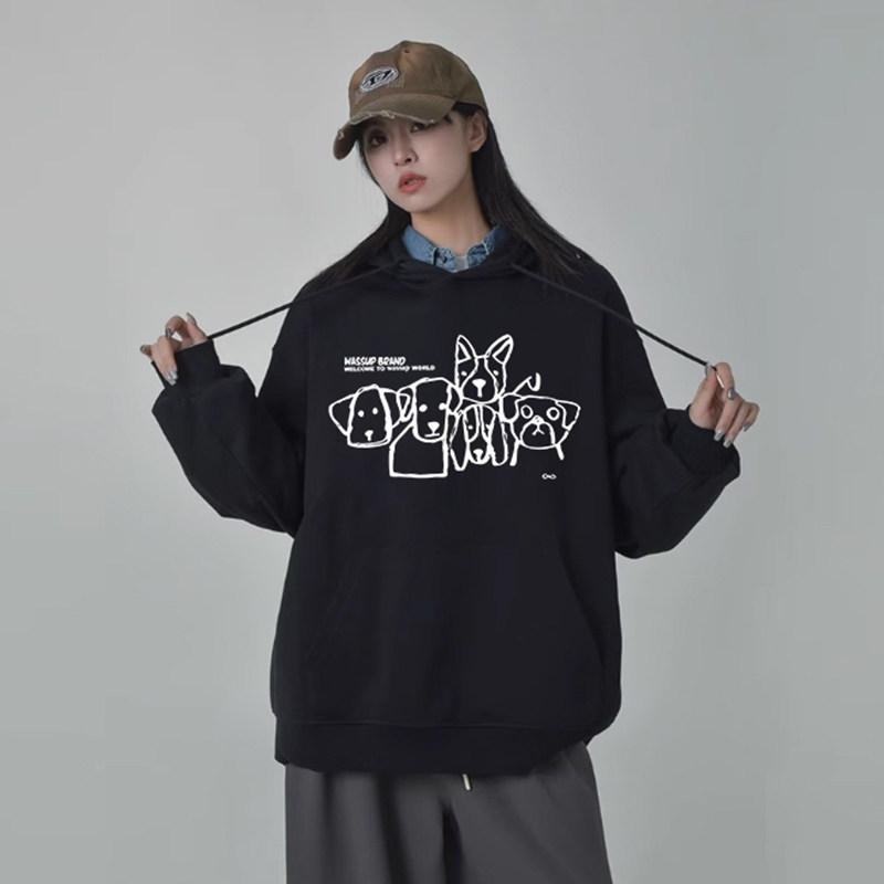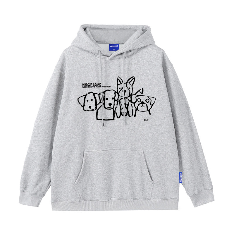 WASSUP狗狗家族美式重磅加绒卫衣男女款秋冬宽松休闲潮流连帽上衣