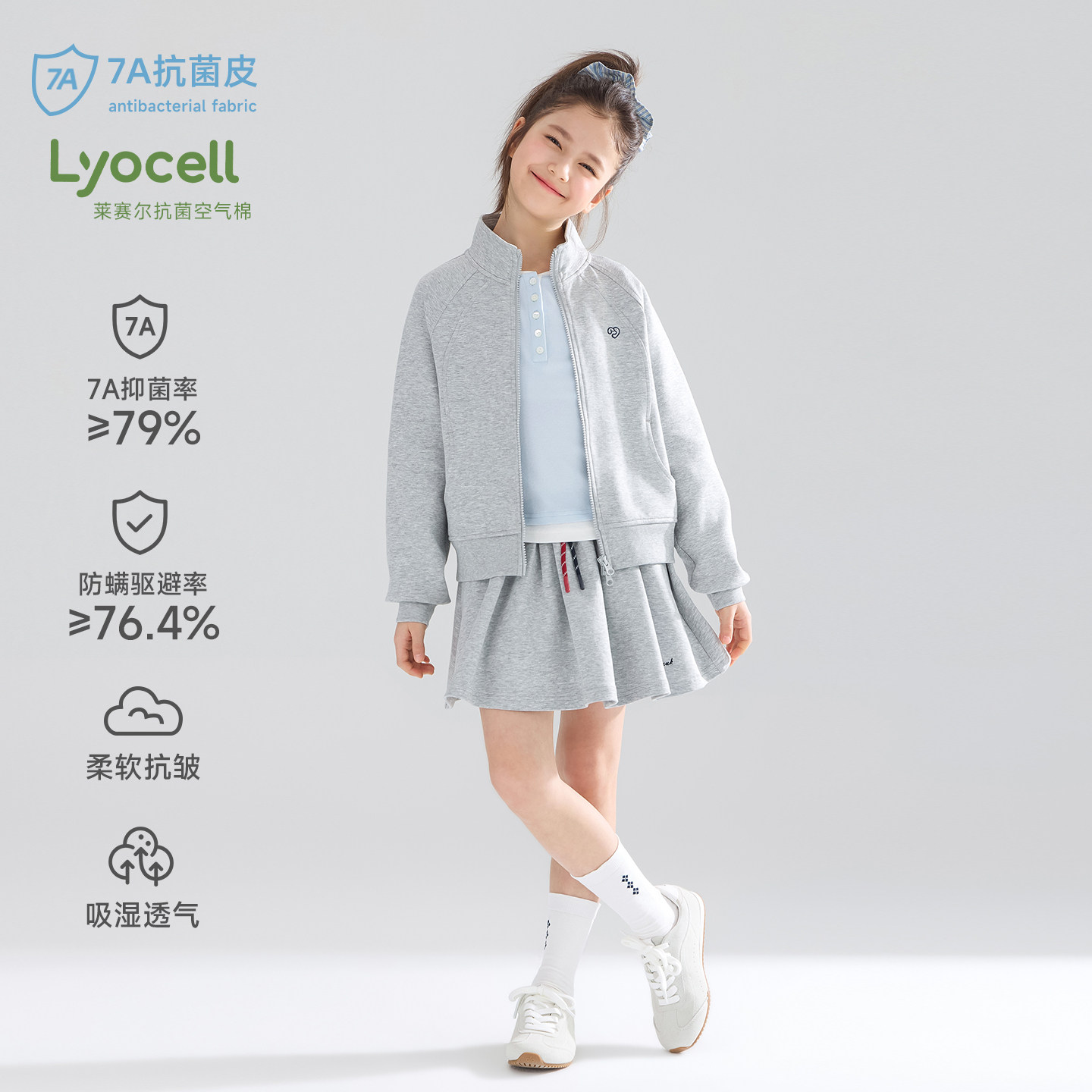 MUCMUKN【随时运动chill】7A抗菌莱赛尔棉休闲百搭卫衣套装女童春