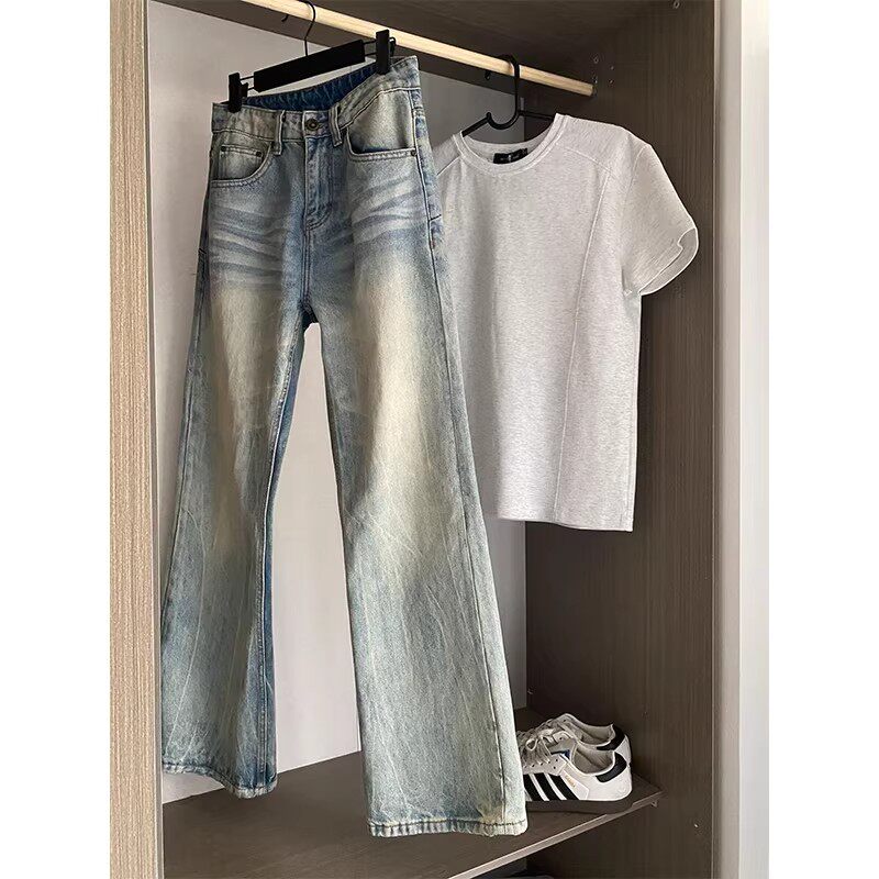 car黑色弯刀牛仔裤男款夏季美式高街vibe风格裤子提档窄版直筒裤