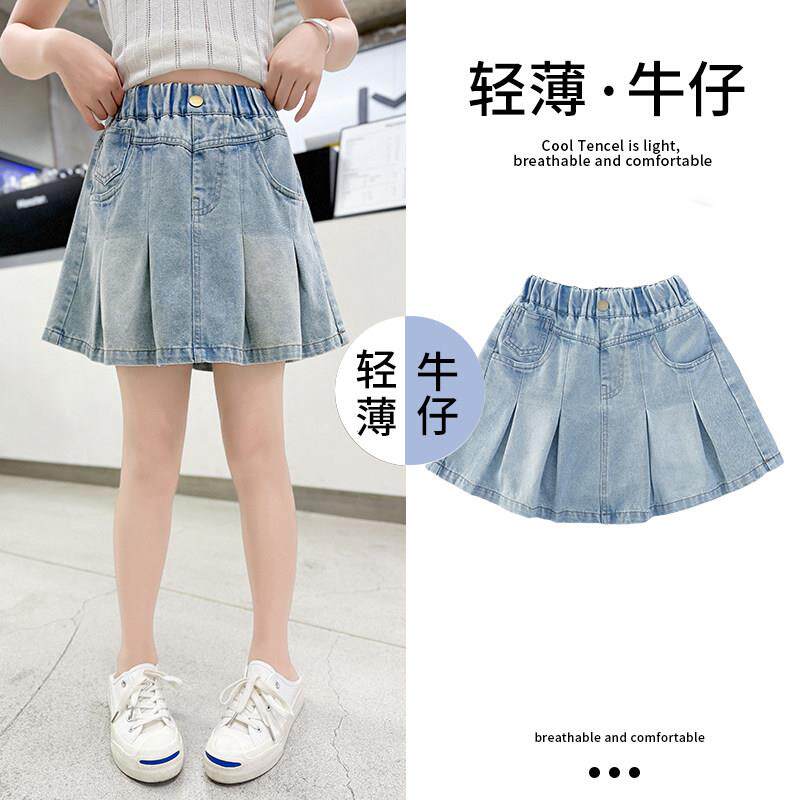 311线报网描述:女童百褶牛仔半身裙短裙薄款夏装2026年新款