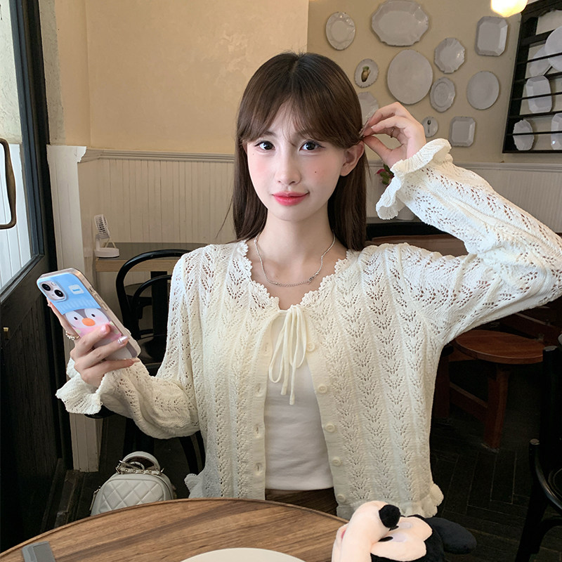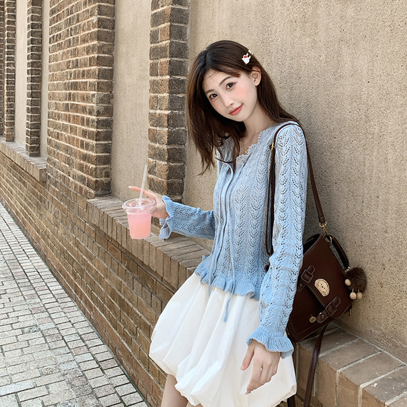 龙妹家蓝色镂空针织开衫外套女外穿2026新款早春气质穿搭防晒上衣
