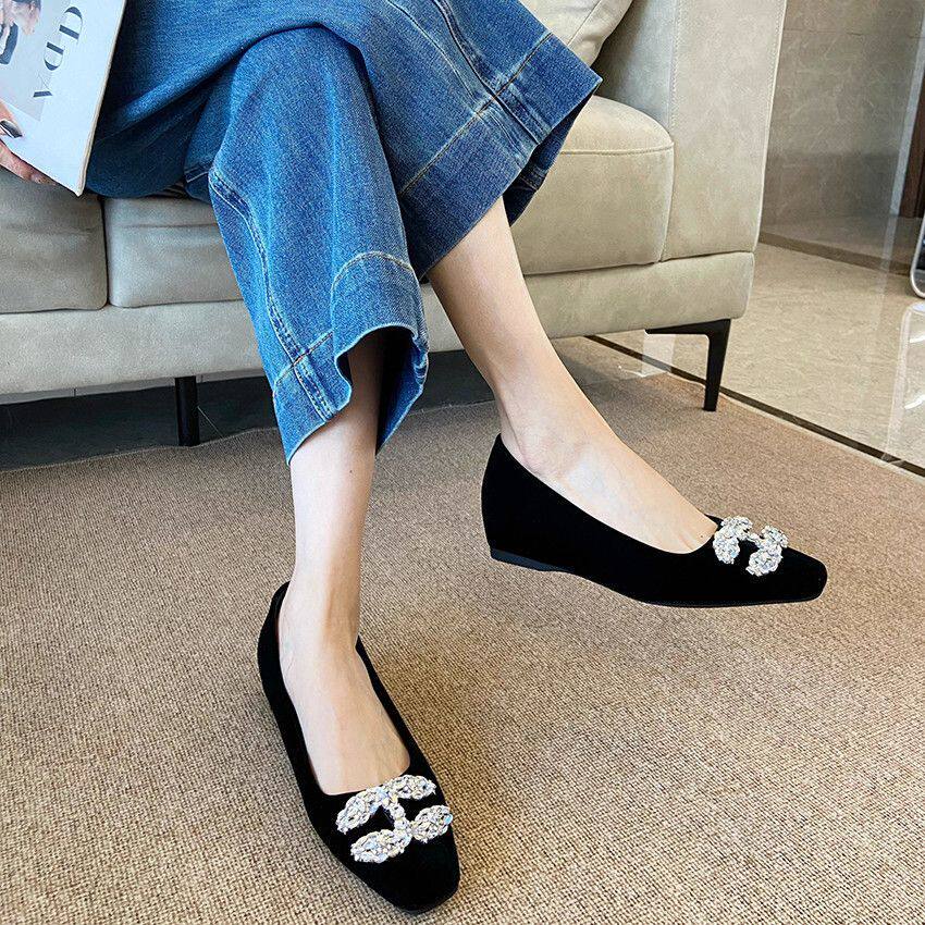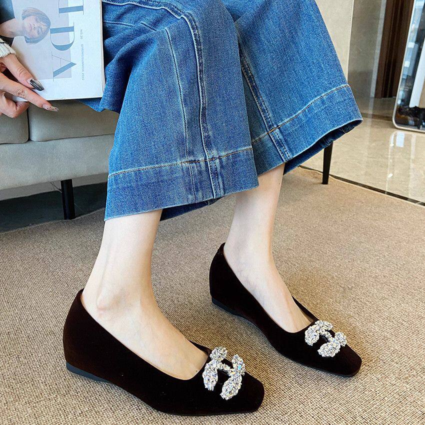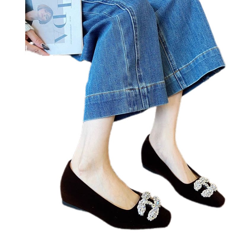 法式轻奢水钻加绒方头玛丽珍鞋2026新款气质内增高绒面浅口单鞋女