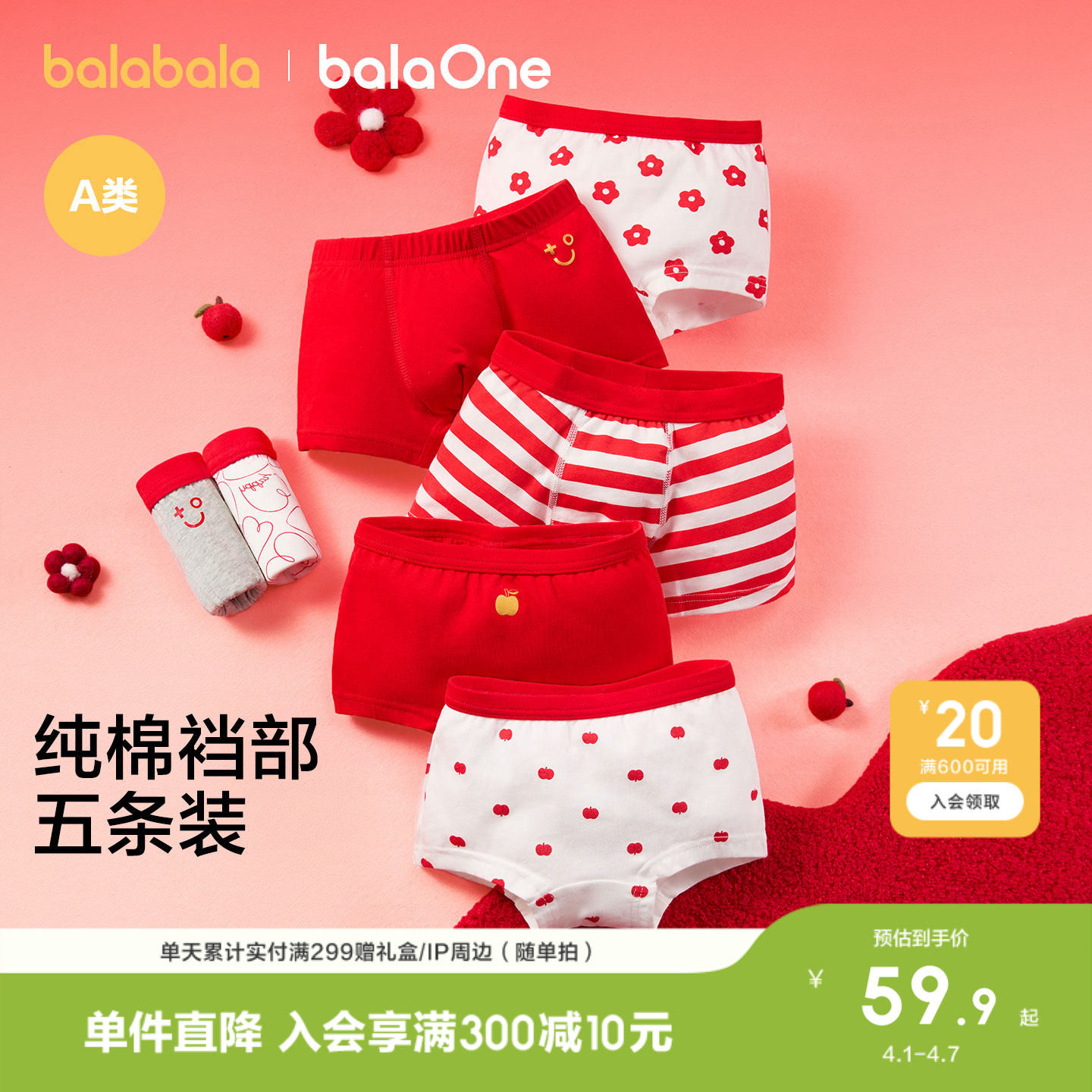 巴拉巴拉儿童内裤平角棉男童短裤女童四角裤本命年红色新年五条装