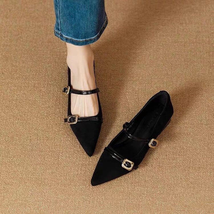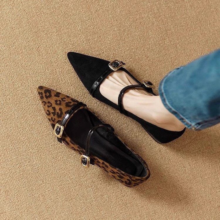 法式豹纹平底玛丽珍鞋女款2026春款黑色气质尖头一字扣带低跟单鞋