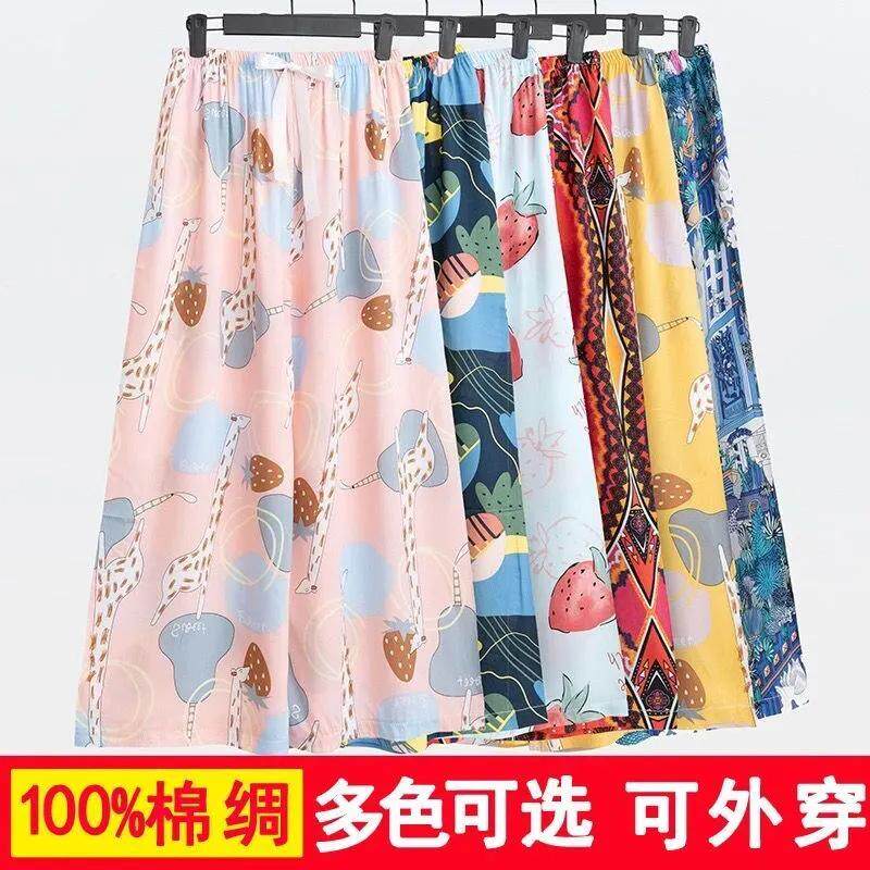棉绸睡裤女士夏季薄款大码人造绵绸可外穿家居碎花长裤子直筒宽松
