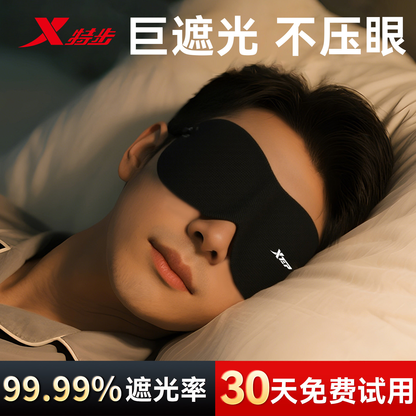 特步眼罩遮光睡眠专用男缓解护眼疲劳助眠睡觉青少年午睡3d冰丝女