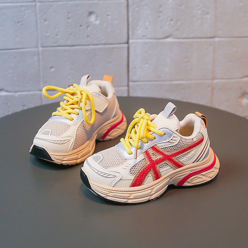 儿童鞋子透气网面女童跑步鞋春秋男童运动鞋软底女童鞋系鞋带春季