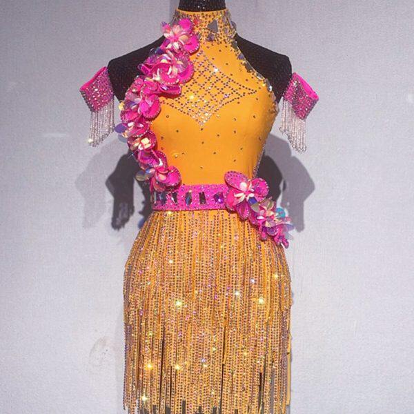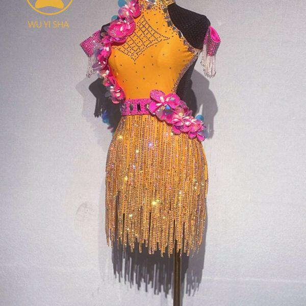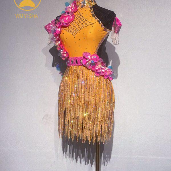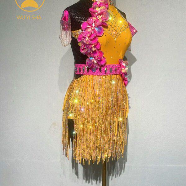 裙条钻舞专业新款比赛拉丁舞服演出服高端9镶钻忆莎黄色3