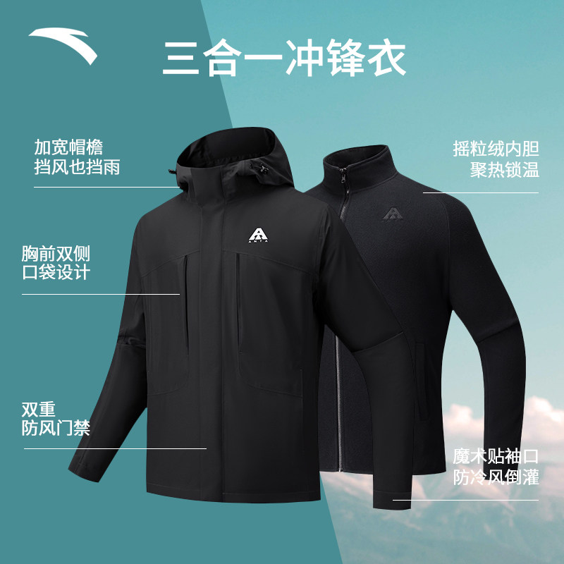 安踏冲锋衣三合一男款水壳2026新款官方旗舰正品防水防风外套男款