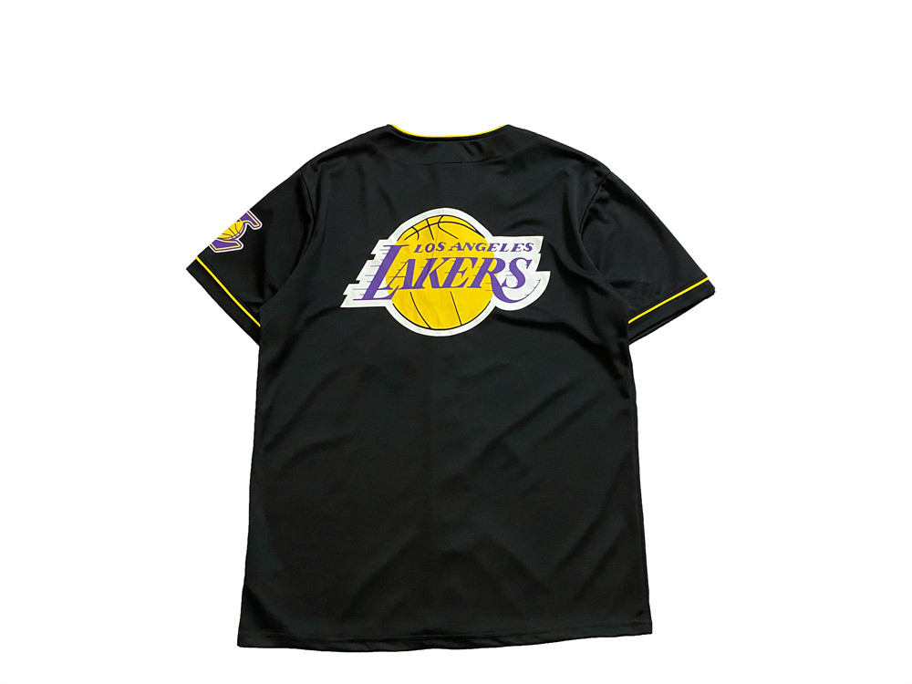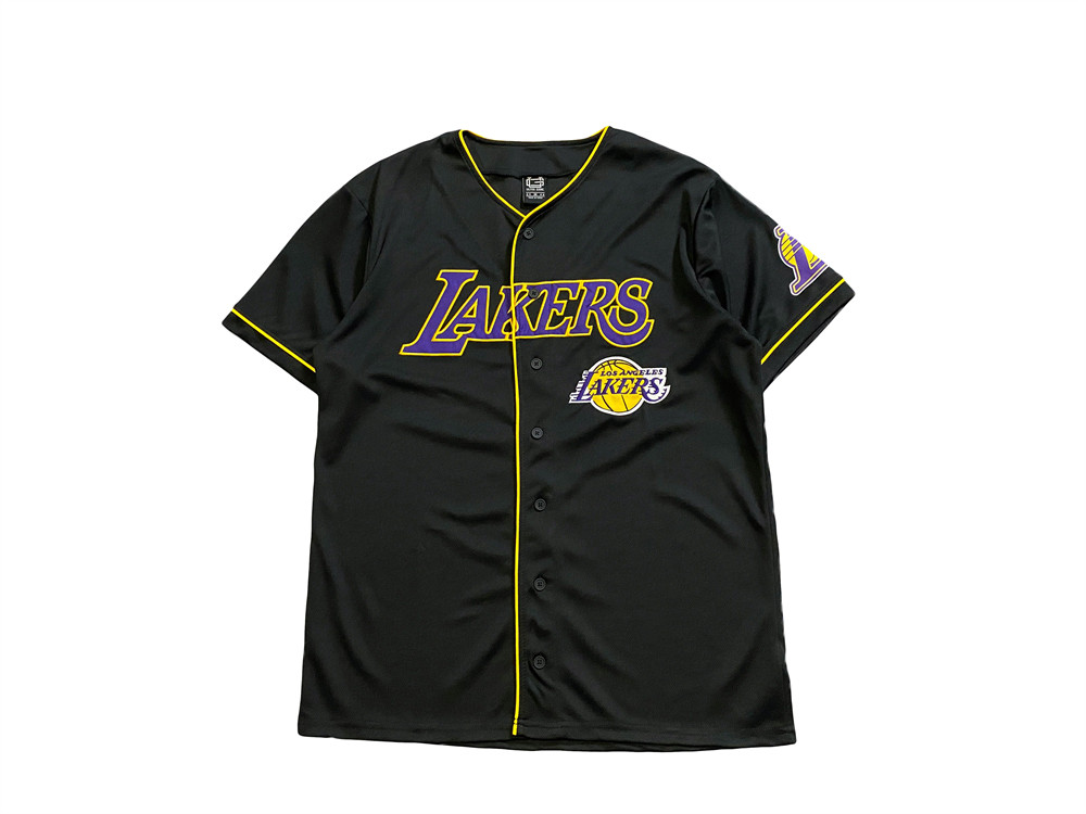 美单湖人 牛头队刺绣短袖 速干网眼运动潮流棒球纽扣开衫男潮外套