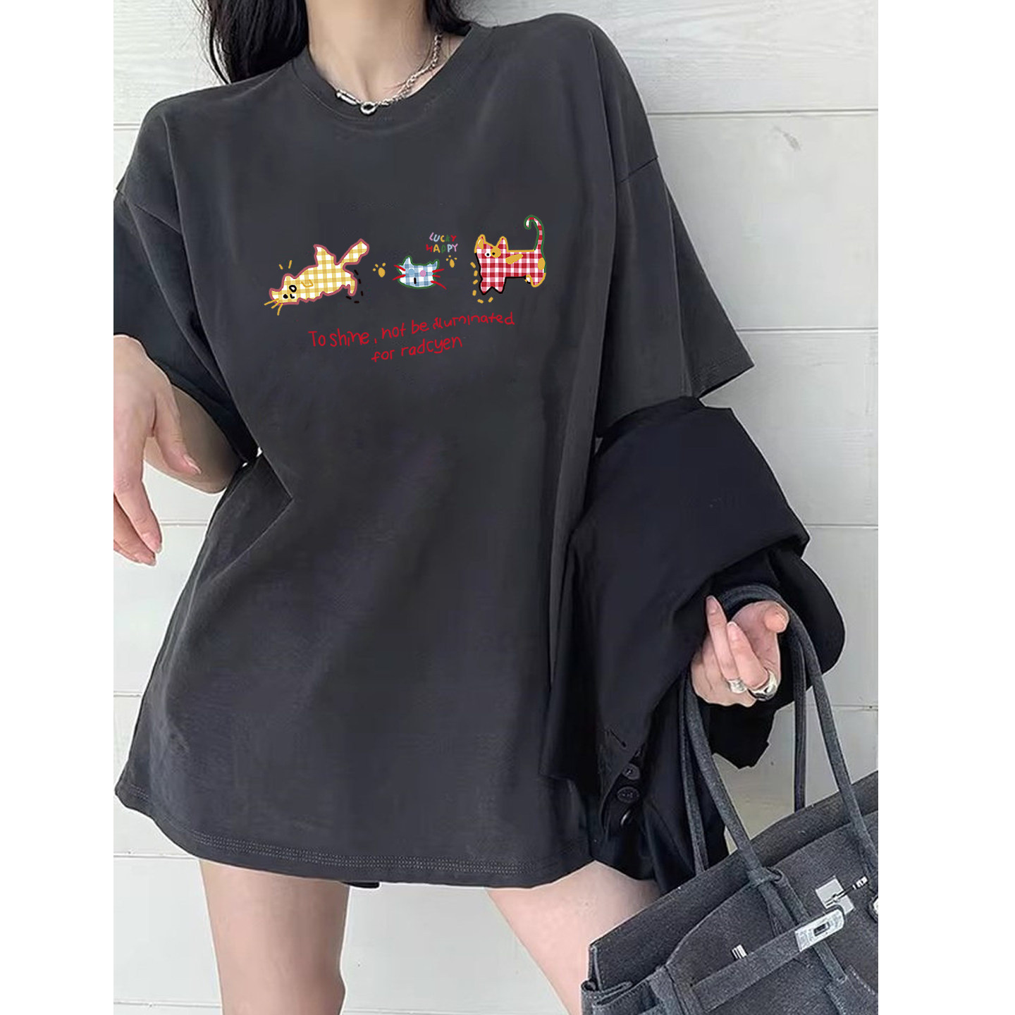 灰色t恤女2026新款夏季纯棉宽松慵懒风大码女装巨好看的短袖上衣