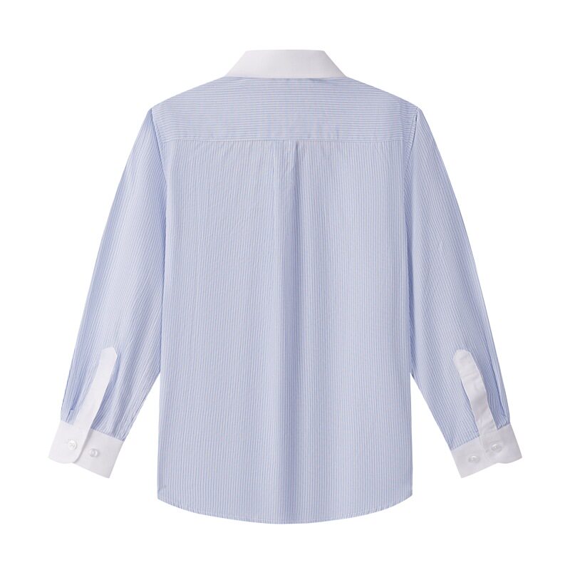 儿童中小学生校服衬衫长袖款英伦学院风男童蓝白条纹衬衣短袖纯棉