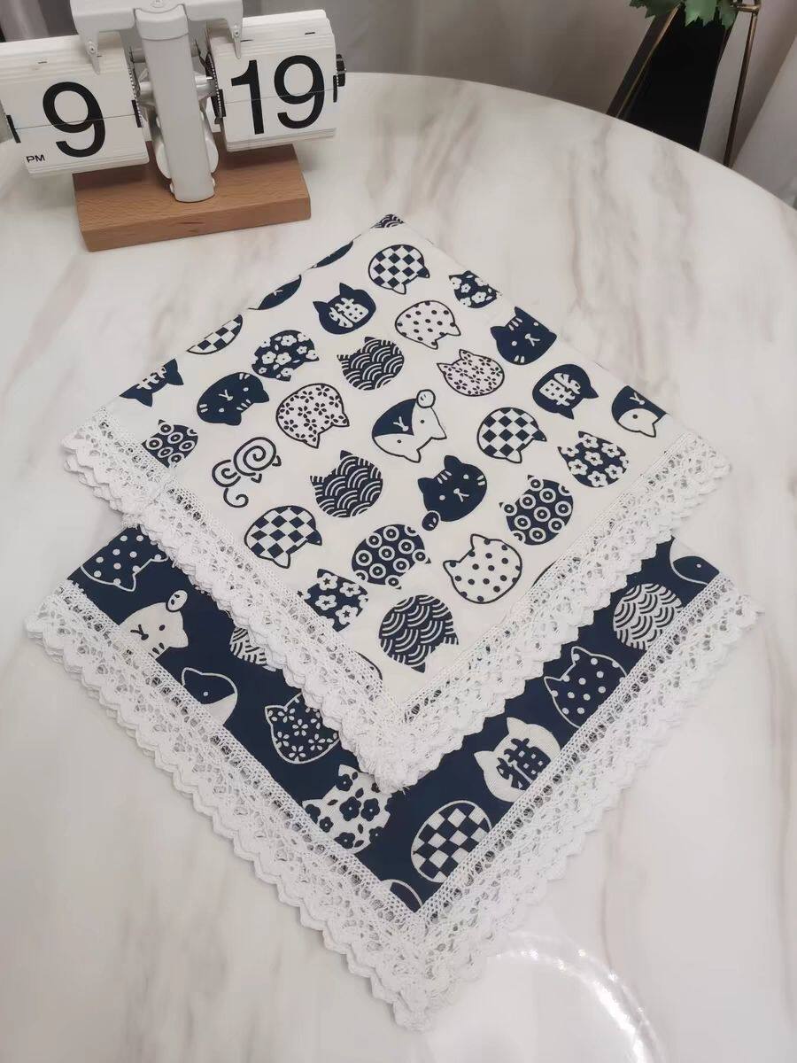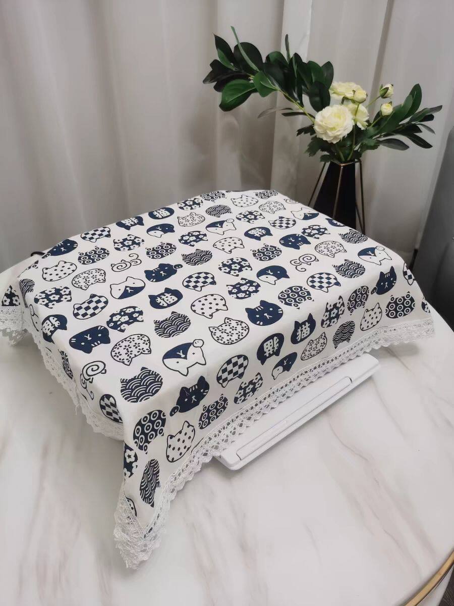 空气炸锅电饭煲破壁机烤箱防尘盖布日系和风招财猫棉麻蕾丝流苏边
