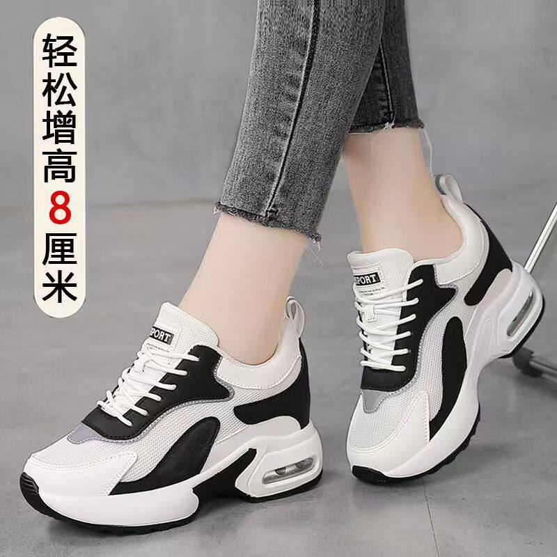 隐形内增高8CM女鞋运动鞋春季网面透气小个子显高厚底休闲旅游鞋