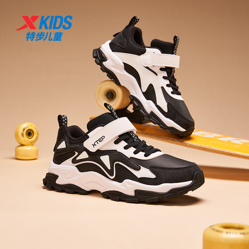 特步儿童鞋2026春季新款皮面保暖户外中大童防水鞋运动休闲鞋男童