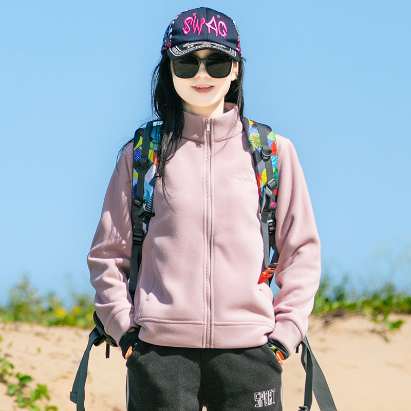 摇粒绒外套女款春秋冬季立领抗静电保暖加厚开衫抓绒衣冲锋衣内胆