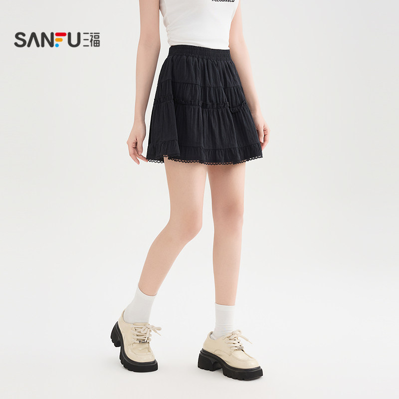 三福白色半身裙2026新款夏季蕾丝花边甜美蛋糕裙小个子短裙子女装