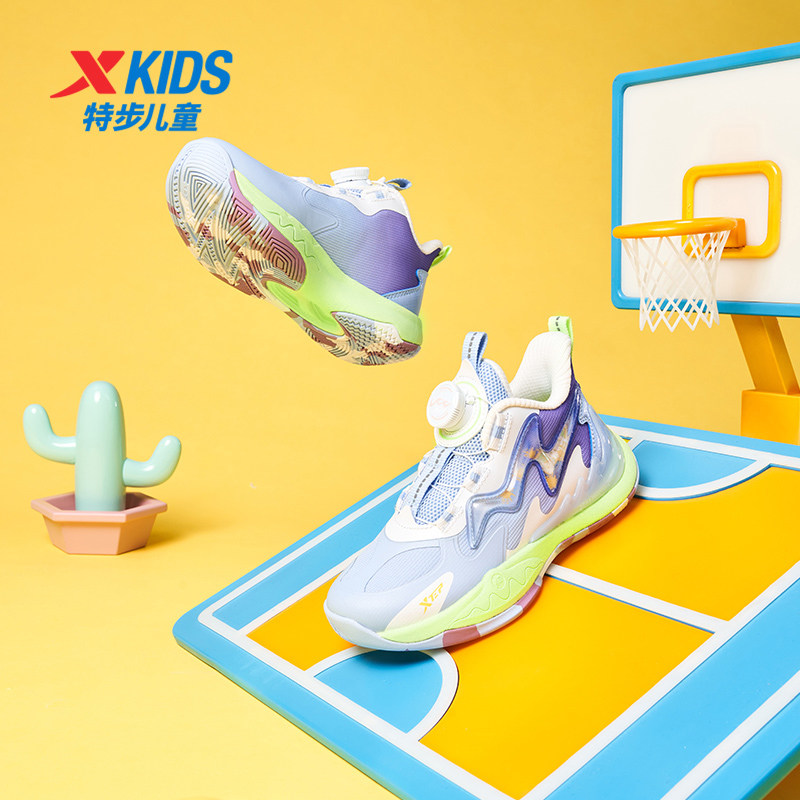 特步儿童鞋子小童篮球鞋2026春季新款旋钮扣鞋儿童运动鞋男童鞋