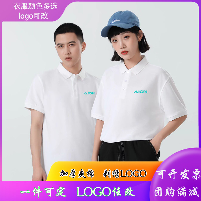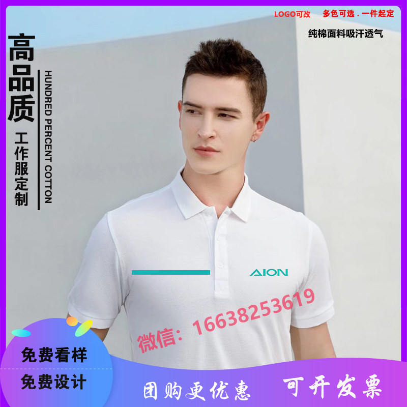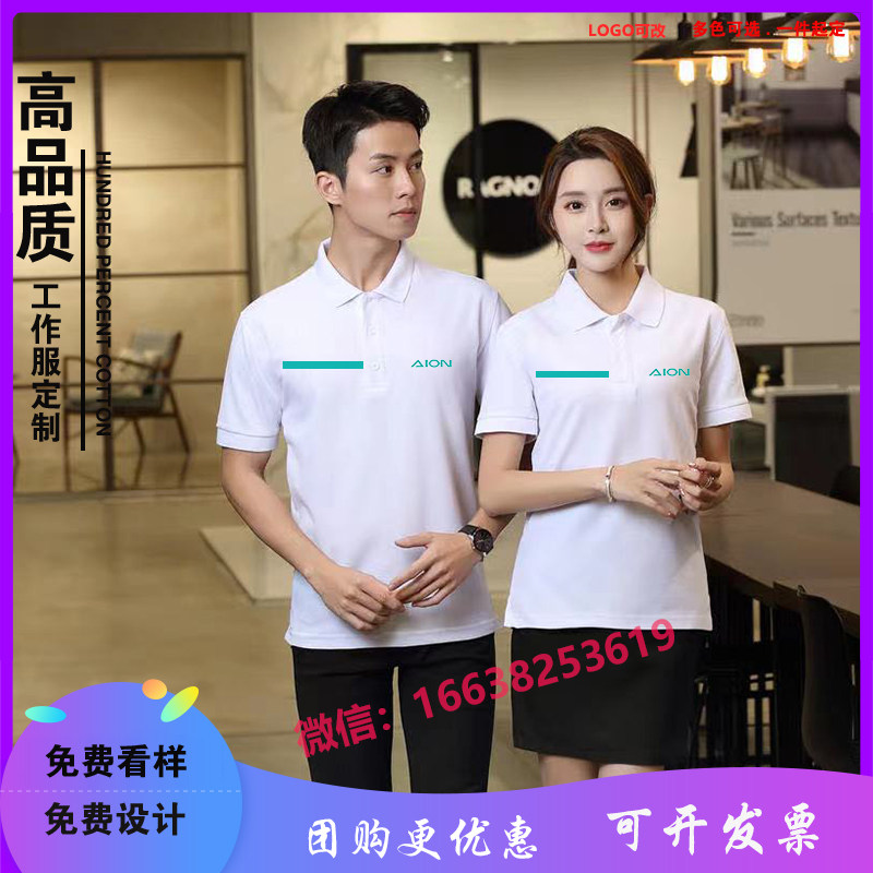 新款广汽埃安翻领工作服短袖汽车4S店纯棉高端t恤衫夏印logo定制
