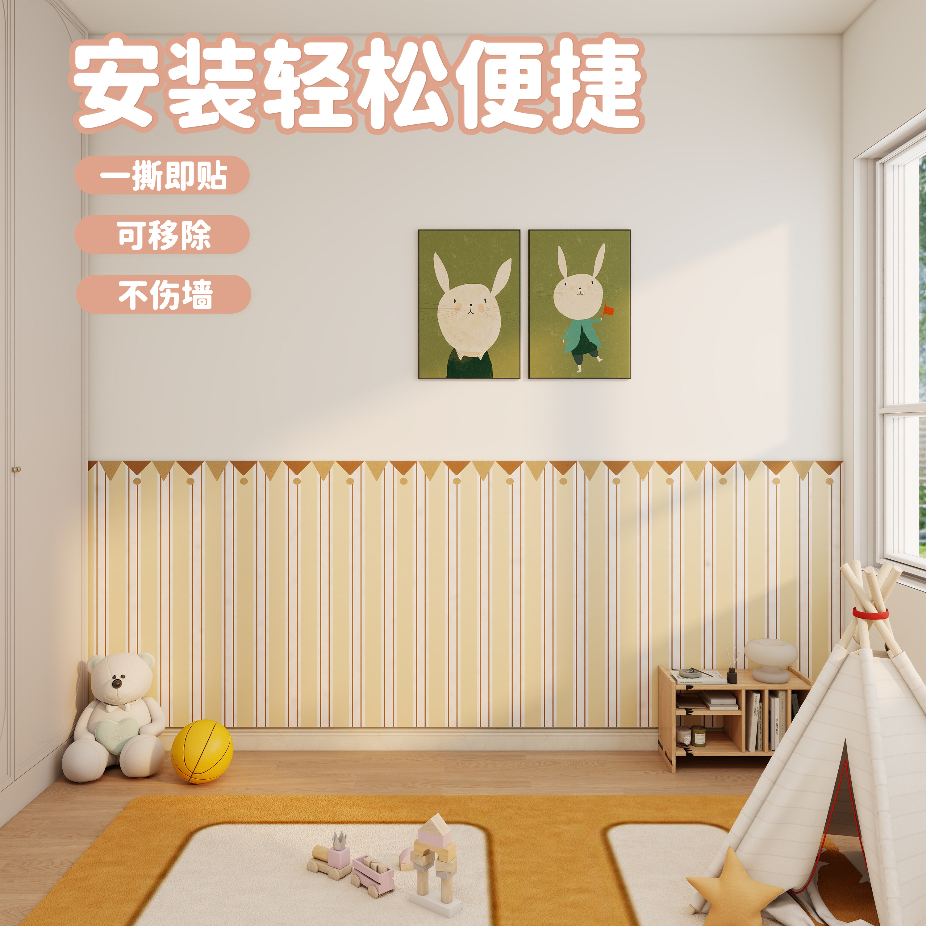 儿童房间装饰神器3d立体免打孔墙面遮丑防撞护墙板童趣风毛毡墙围