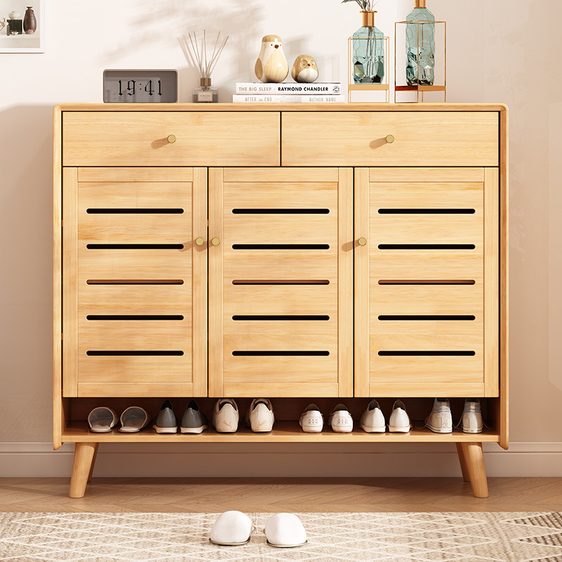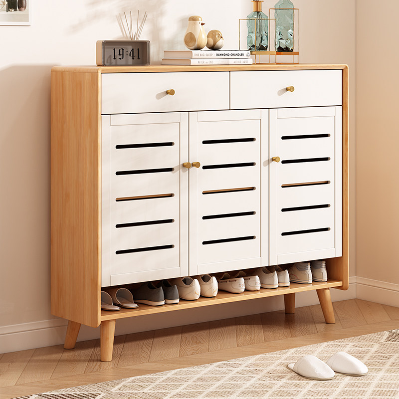 实木鞋柜小户型家用客厅收纳柜入户玄关柜防尘透气百叶门储物柜
