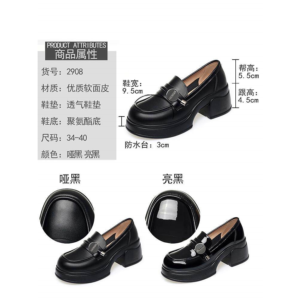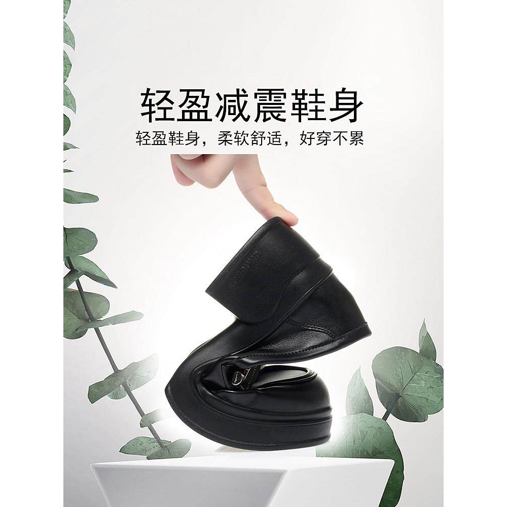 香港YA真皮厚底乐福鞋女2026新款春秋款女鞋松糕底单鞋一脚蹬增高