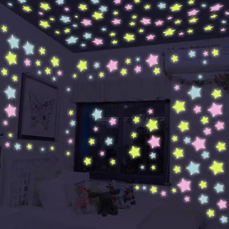 3D立体星星夜光贴荧光贴纸天花板卧室儿童房间吊顶装饰自粘墙贴画
