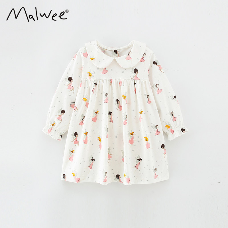 malwee女童长袖连衣裙秋季新款洋气好看小女孩纯棉公主裙儿童裙子