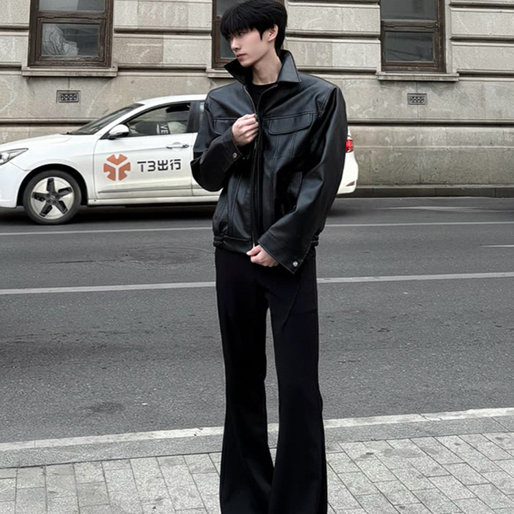 黑色微喇叭西裤加长版高个子男款秋季西装裤子cleanfit休闲弯刀裤