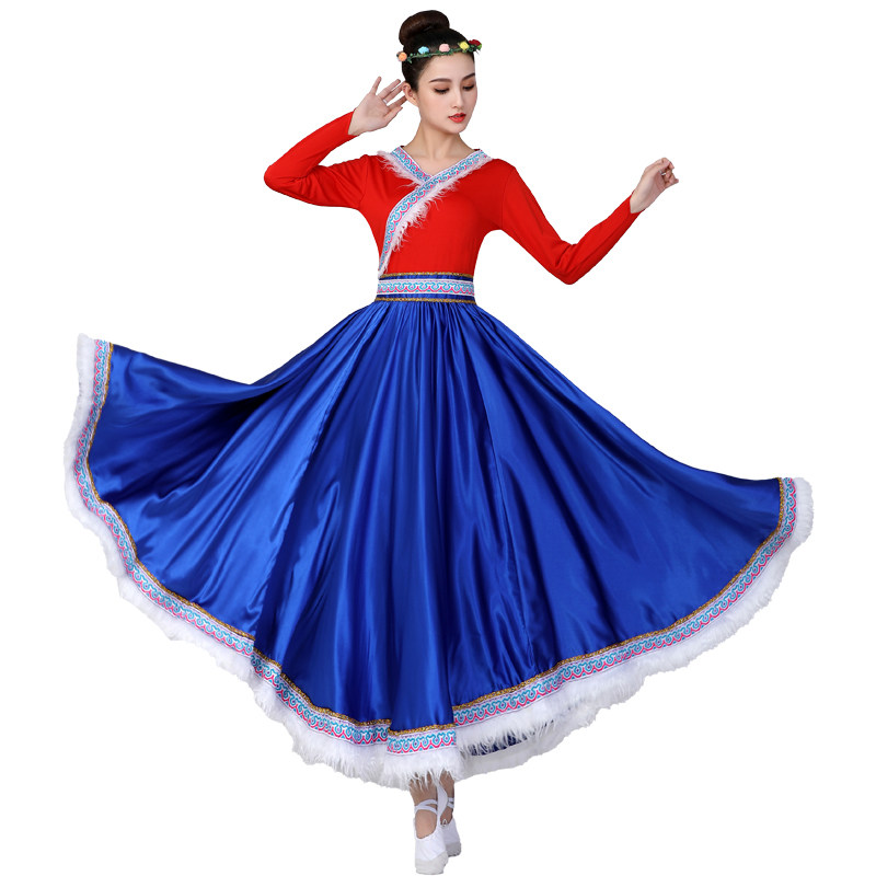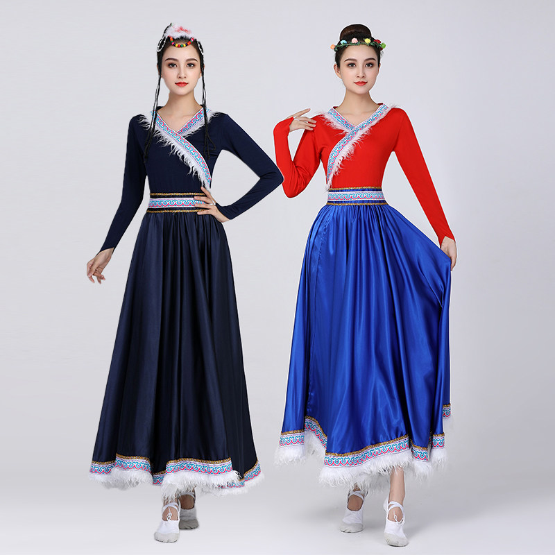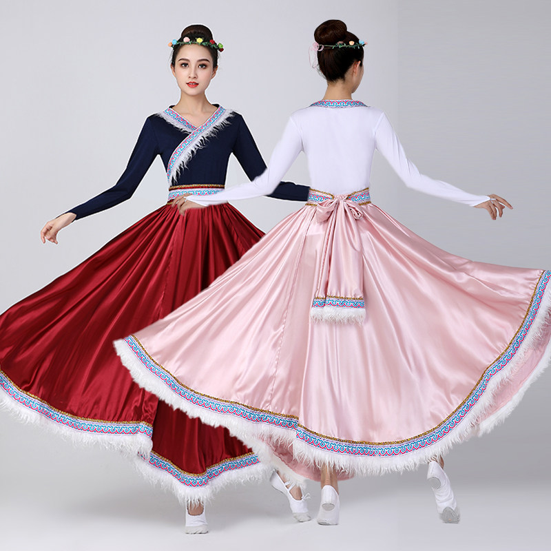 藏族舞蹈演出服装大摆裙女成人夏套装艺考练功民族服饰练功表演服