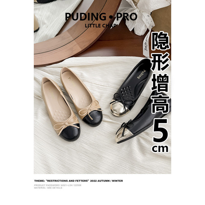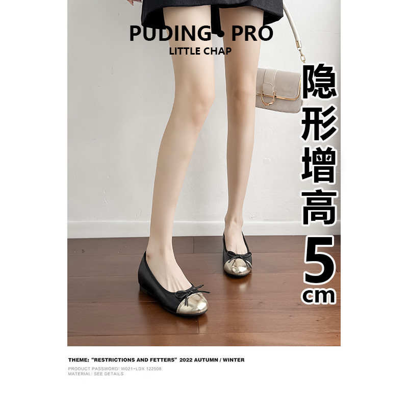 真皮内增高小香风浅口单鞋女款2026新款芭蕾舞豆豆鞋百搭奶奶鞋子