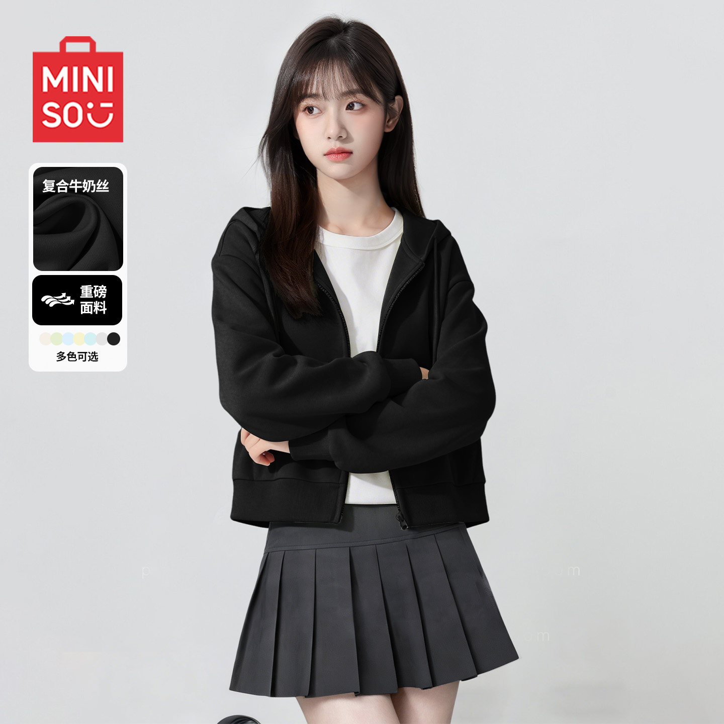 311线报网描述:名创优品小个子短款开衫卫衣 正品保障