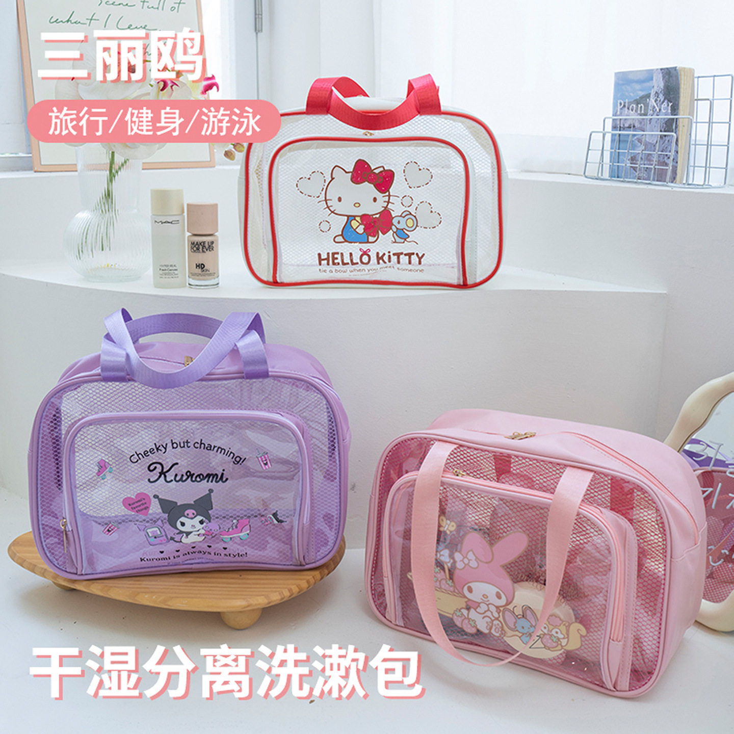 helloKitty三丽鸥防水透明化妆包大容量便携旅行洗漱收纳包手提kt
