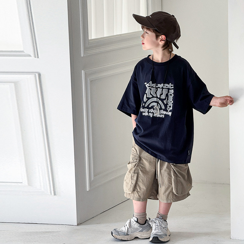男童韩系短袖套装夏季2026新款中大童夏装纯棉半袖T恤儿童装痞帅