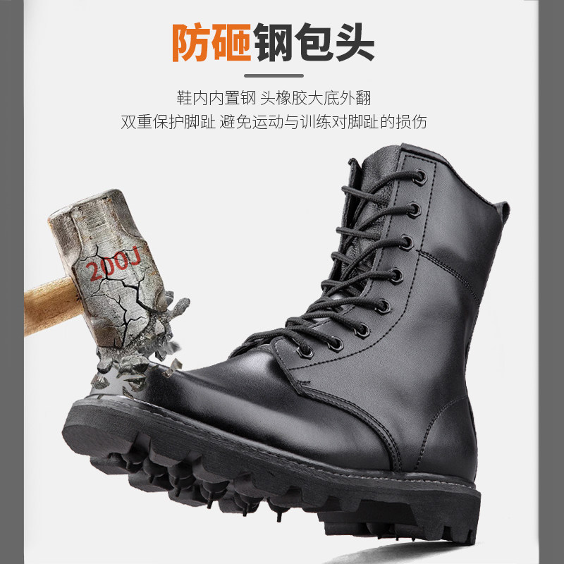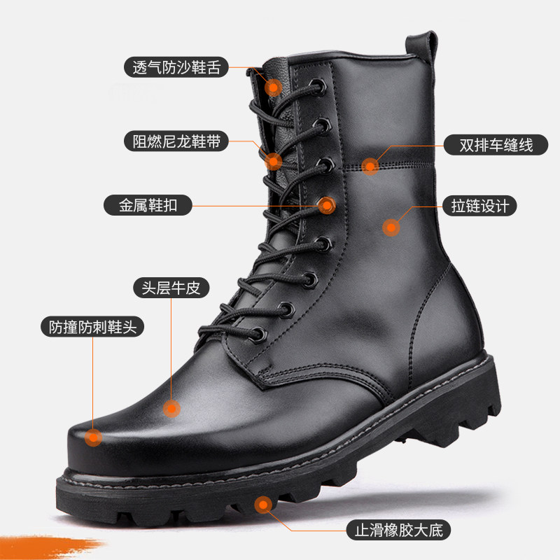 311线报网描述:钢头防砸作战靴侧拉链牛皮战靴防水战术靴