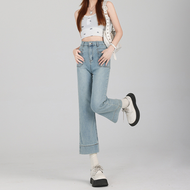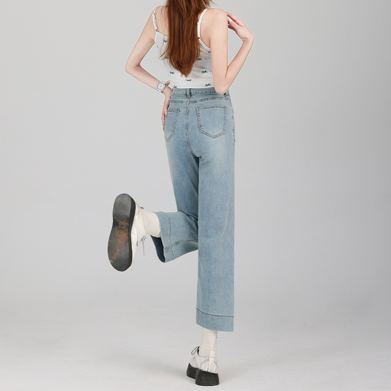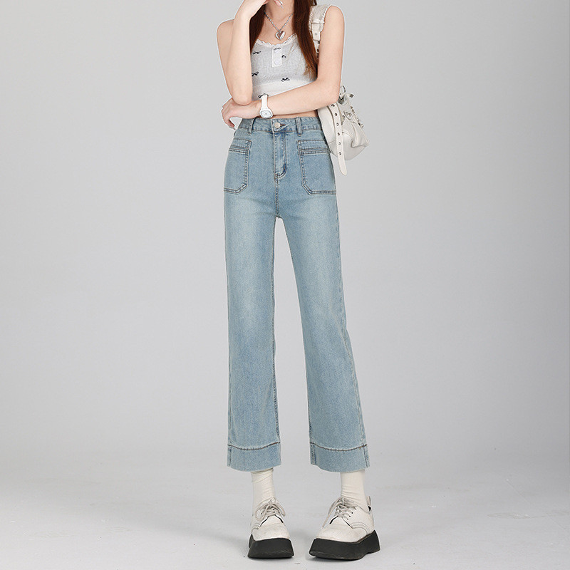 浅色烟管裤女2026新款春款八分九分小个子直筒裤子夏季薄款牛仔裤