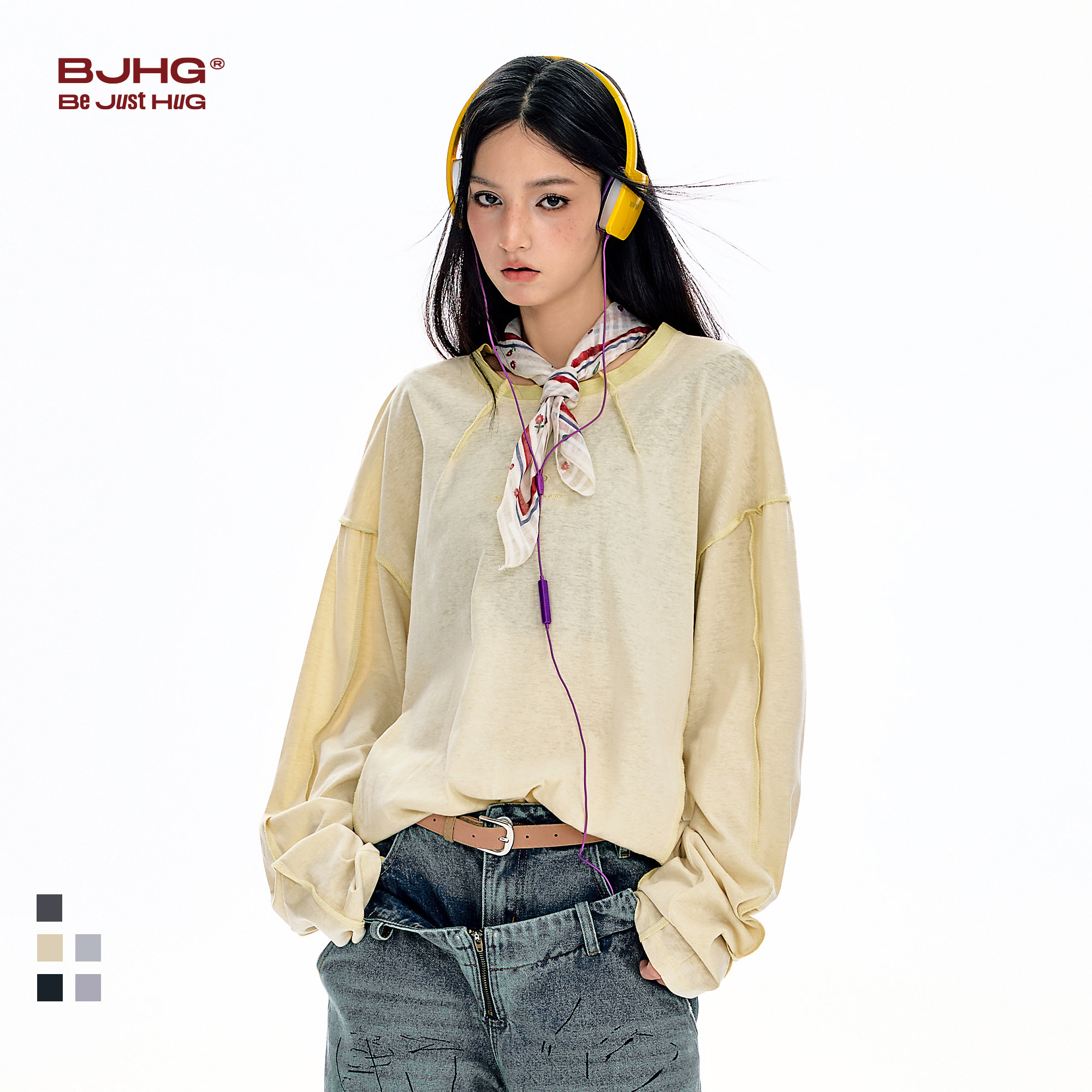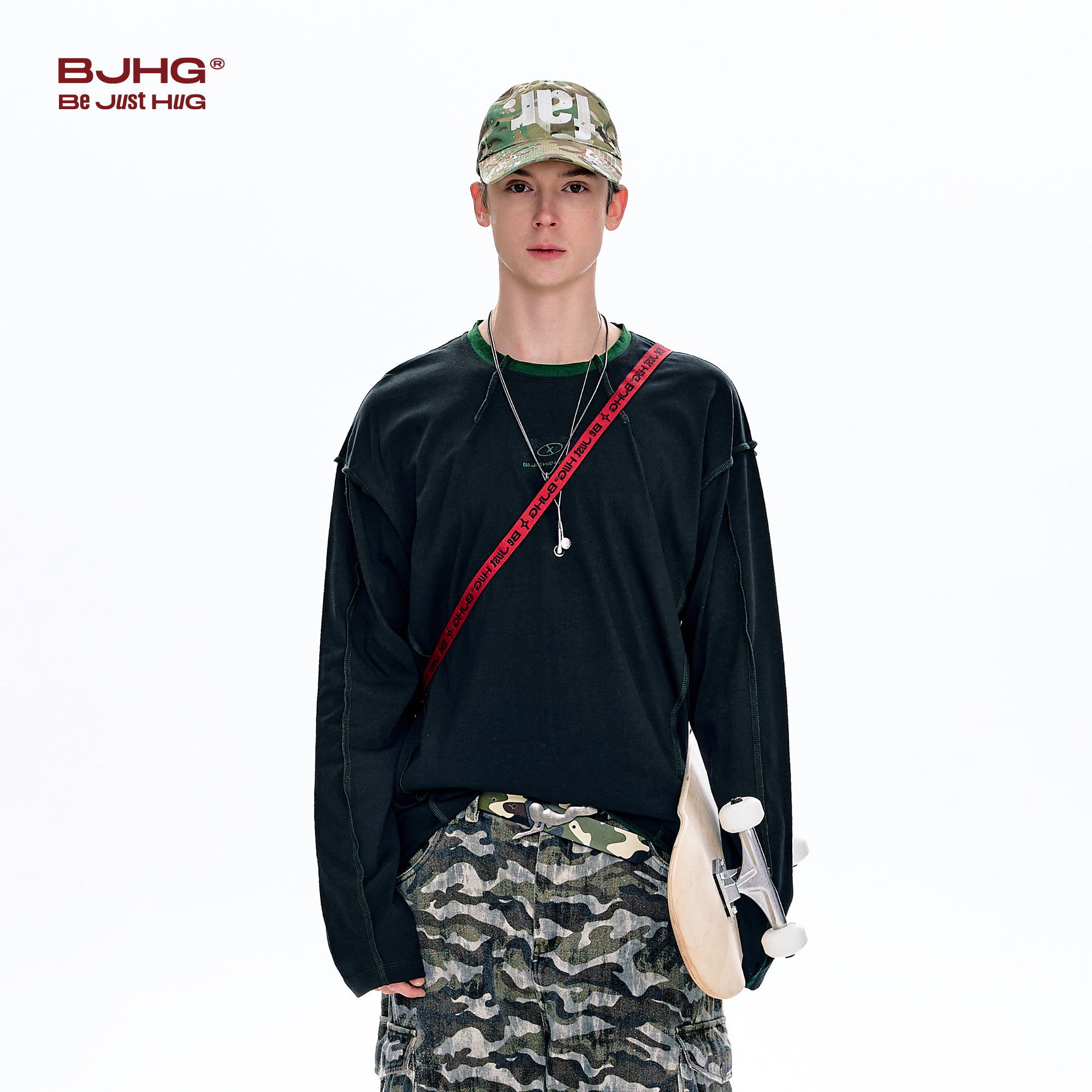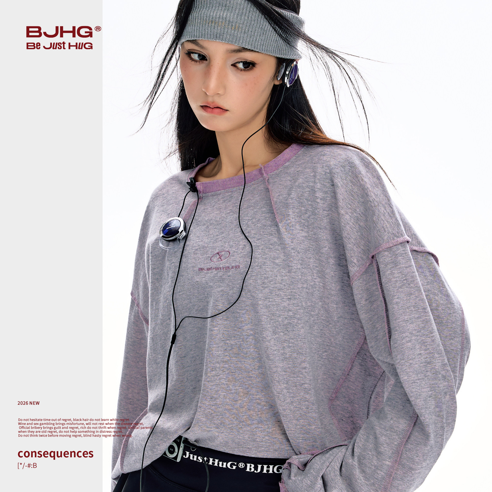 BJHG不计后果 长袖t恤男款春季圆领卫衣美式内搭户外针织打底衫女