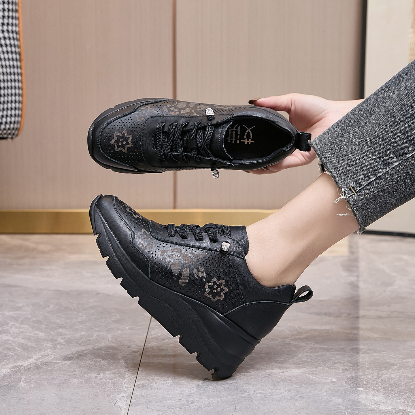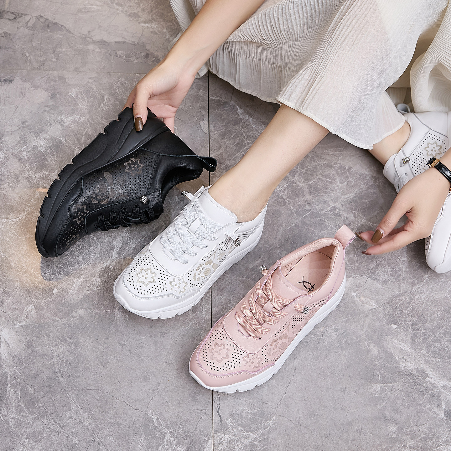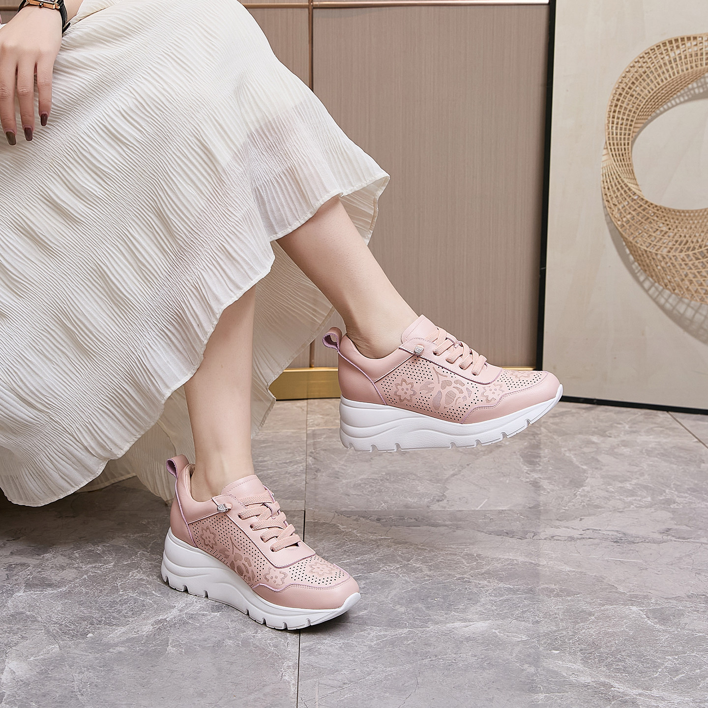 艾淇牛皮镂空一脚蹬休闲鞋女2026春季新款女鞋舒服百搭轻便厚底鞋