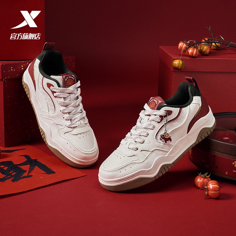 特步皓白3|男鞋板鞋2026年春新款革面保暖板鞋运动休闲鞋新年鞋女