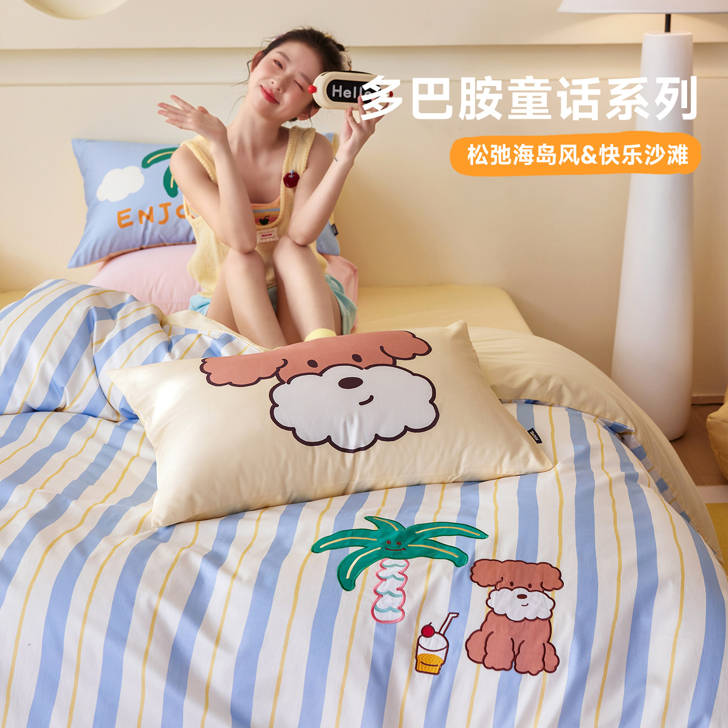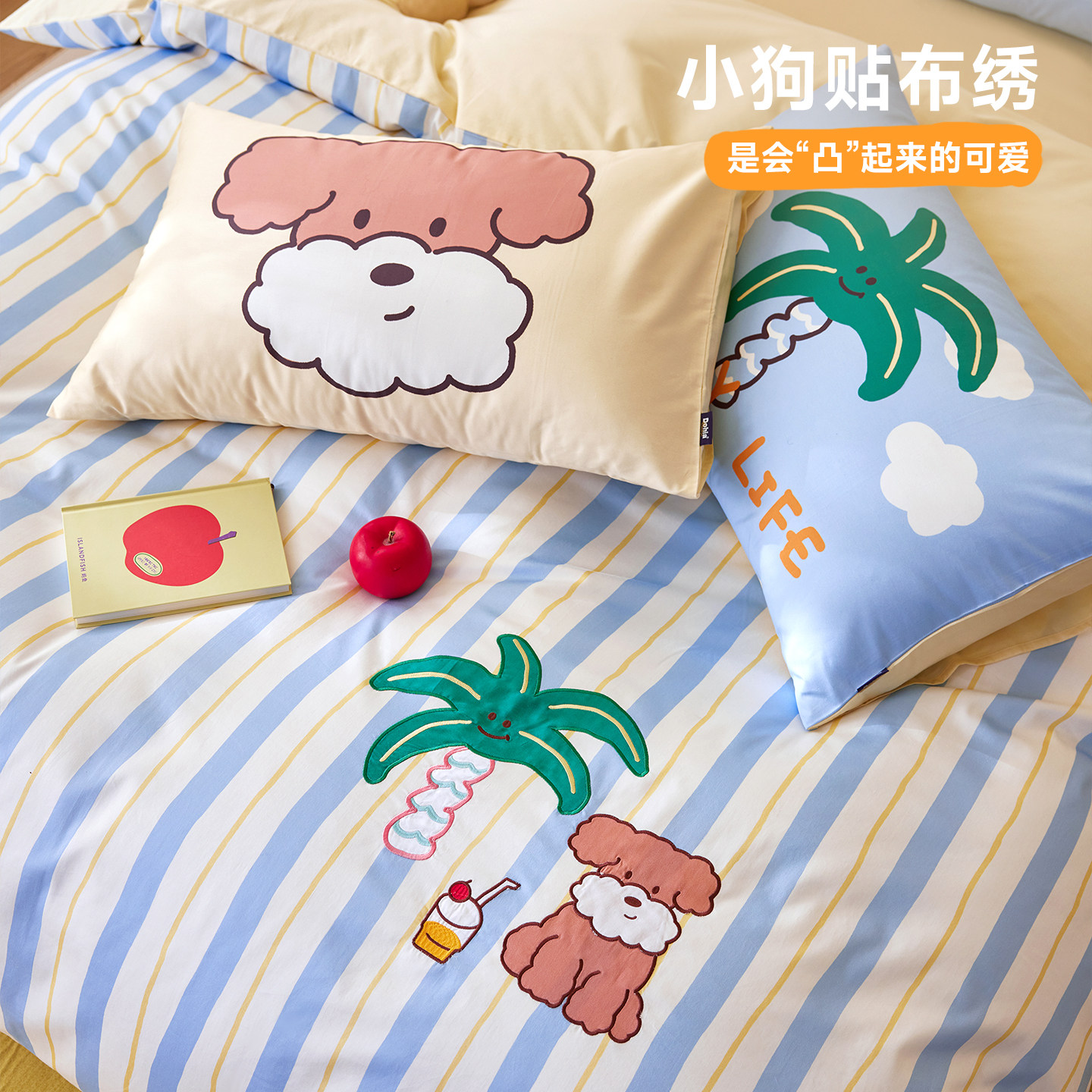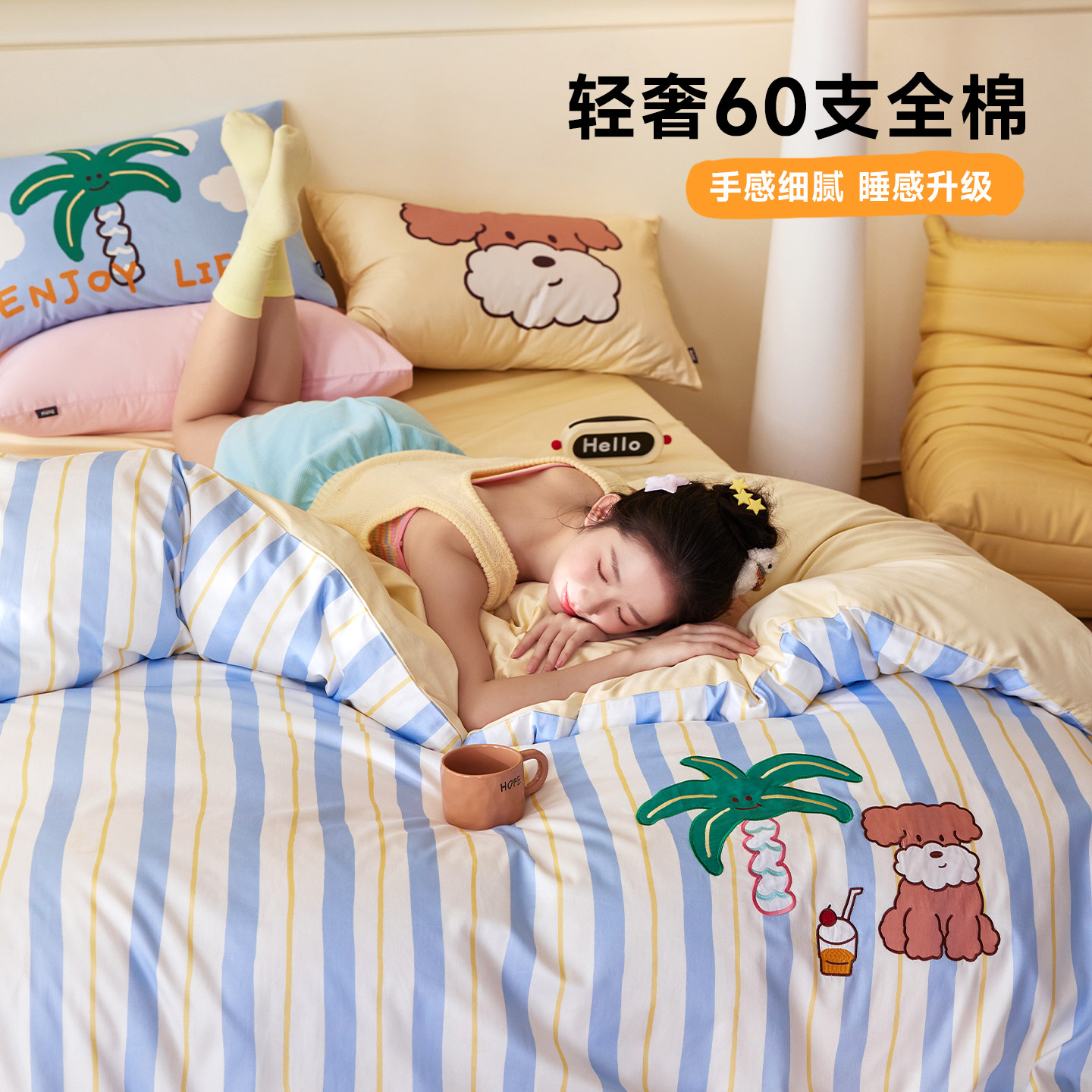 多喜爱60支全棉纯棉四件套床单床品贴布绣被套被罩被单套件新品