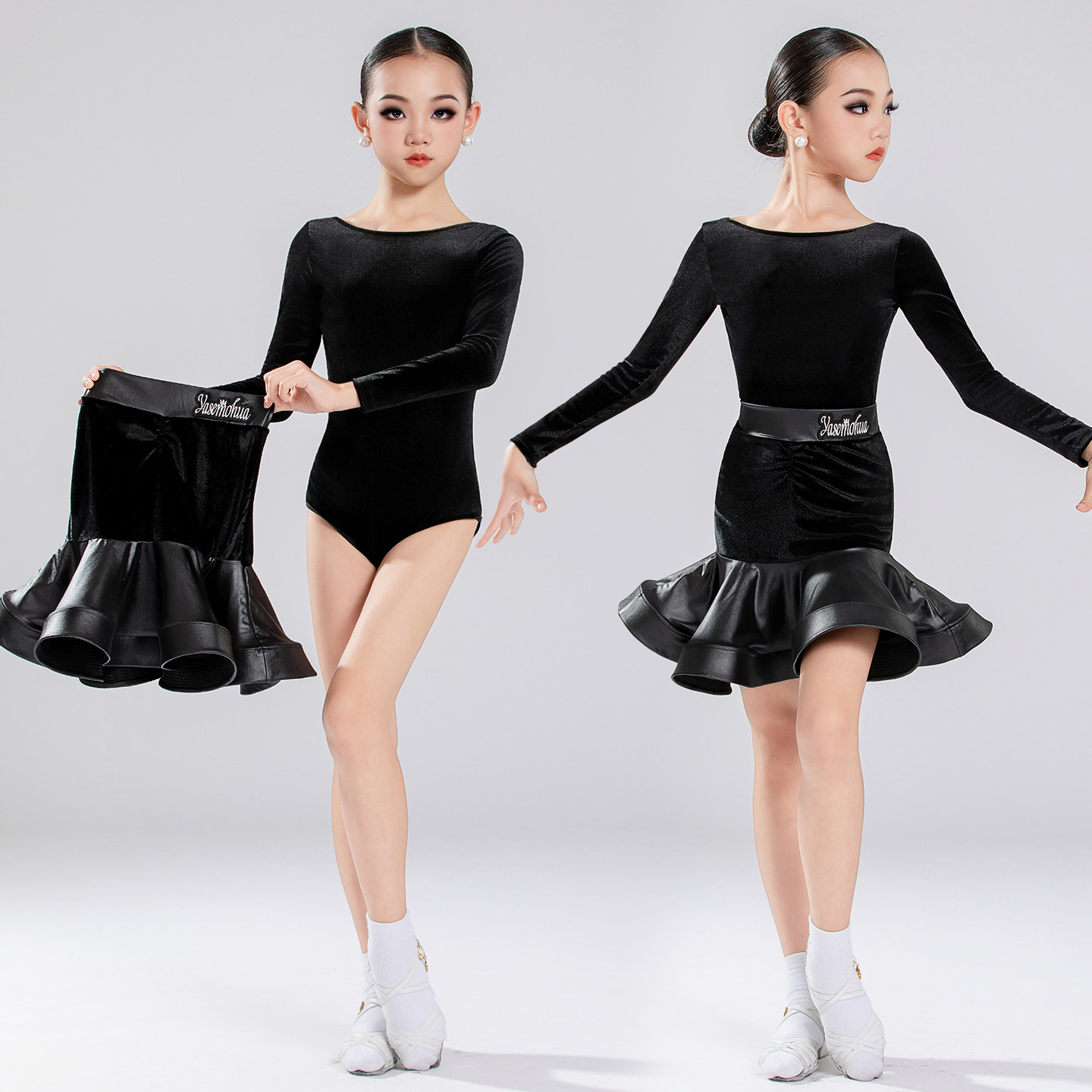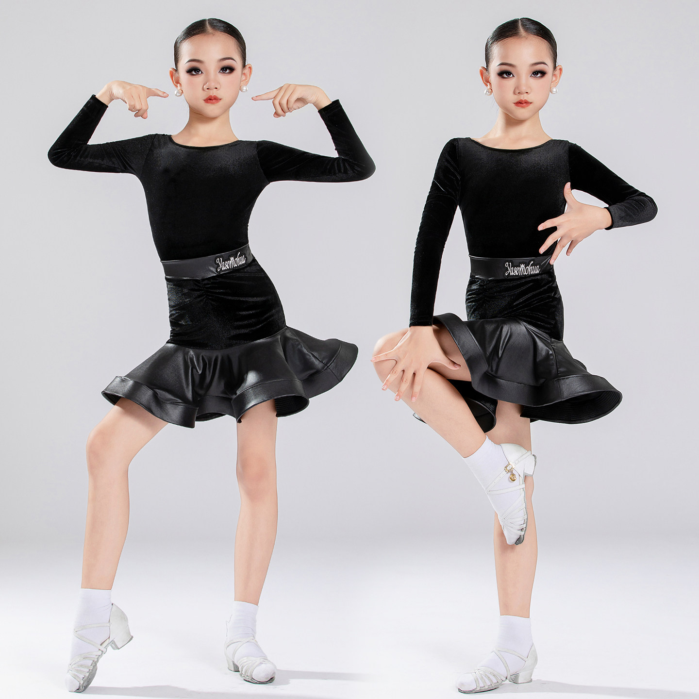 2026春季新款女童长袖拉丁舞服女童丝绒练功服训练舞裙比赛规定服